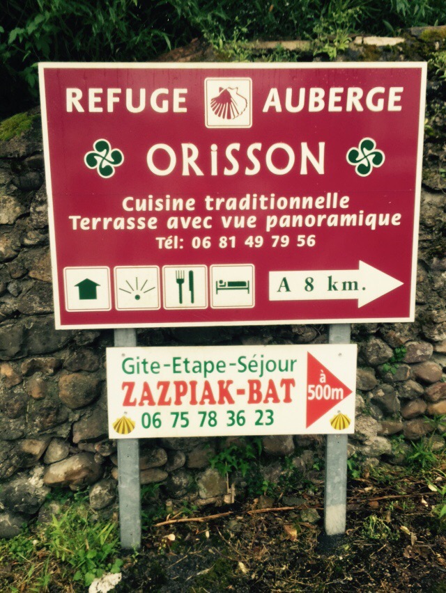 The trek was arduous, but well within our limits.  We have half the climb behind us, having arrived at our Orisson Refuge at around 12:30.  Just in time for lunch and a lovely Basque beer for our reward!  At our table are our new friends Gjertrud, and Anastasia from Russia…