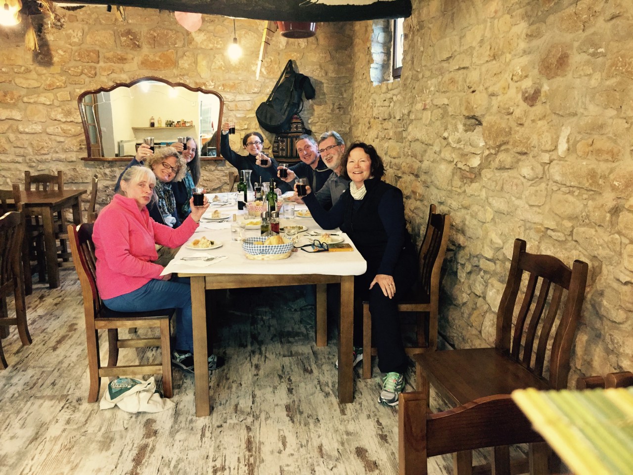 Tomorrow we are thinking of another short day (10-12 km)… Estella is our next town, and was the seat of the Navarra Kings… We’ll have a look at the castle and the church where they were corronated, then when we leave Nabarro and enter Rioja, we will come to the famous wine fountain…our intention is to probably stay in Villamayor de Monjardin, A) because Joce said it was amazing and B) because we would have to go another 11 km before we got to a decent Albergue… In the meantime here we are enjoying our evening meal…until tomorrow!