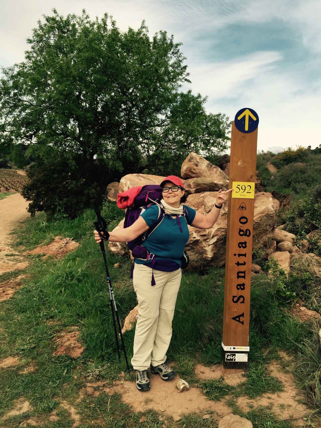 As you can see, aspirin is part of the Camino breakfast of champions!!! Shortly after breakfast we passed the following sign… Just goes to show you can’t trust those wineries for distance measurements!!!