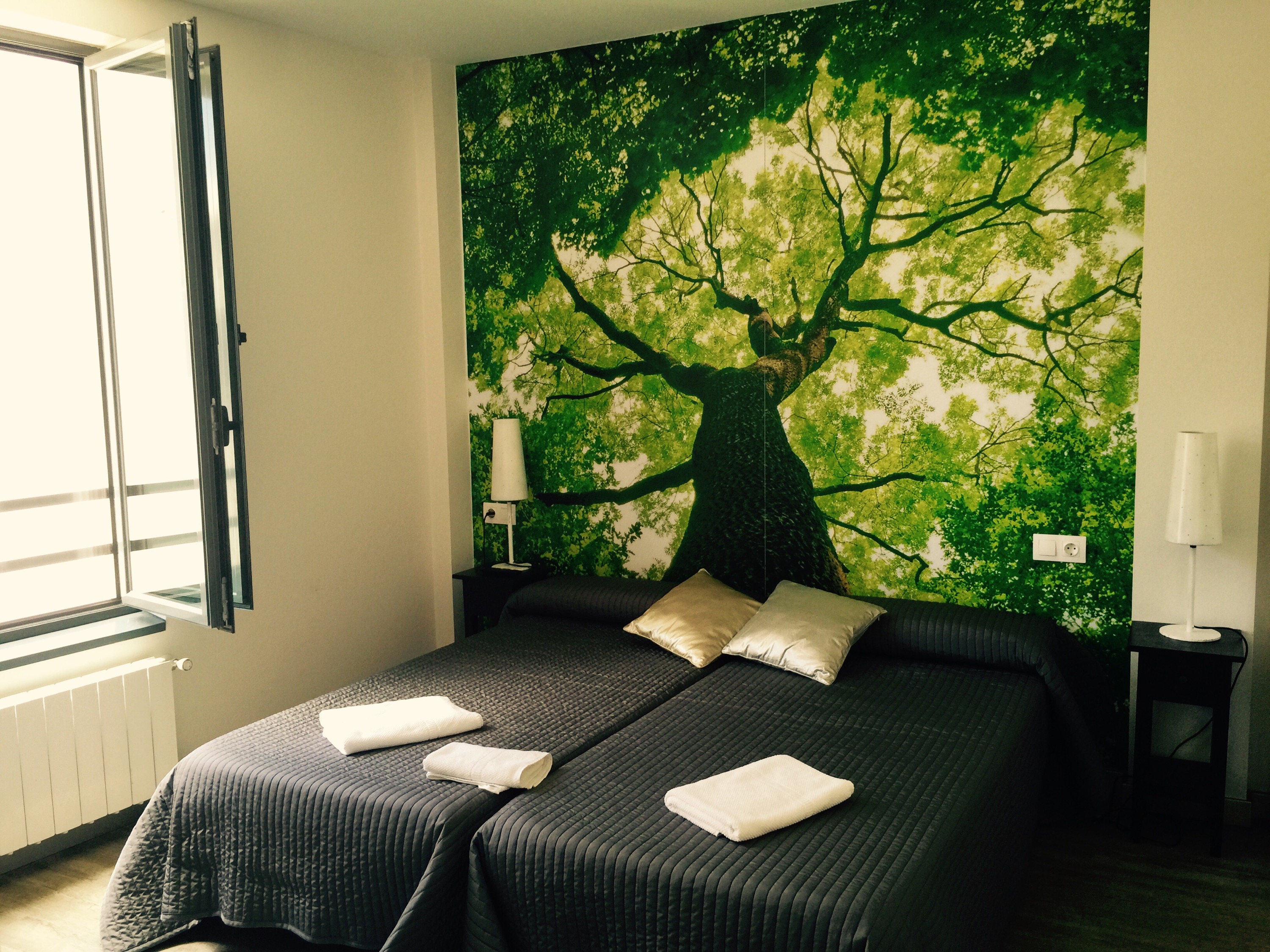After walking 25 km today and doing vertical climbs totaling 450 m, we were ready for our Albergue.  We decided to treat ourselves to a private room, and we’re delighted to find this …. With our own private bath , real… Not camping towels, and sheets… Not sleeping bags!