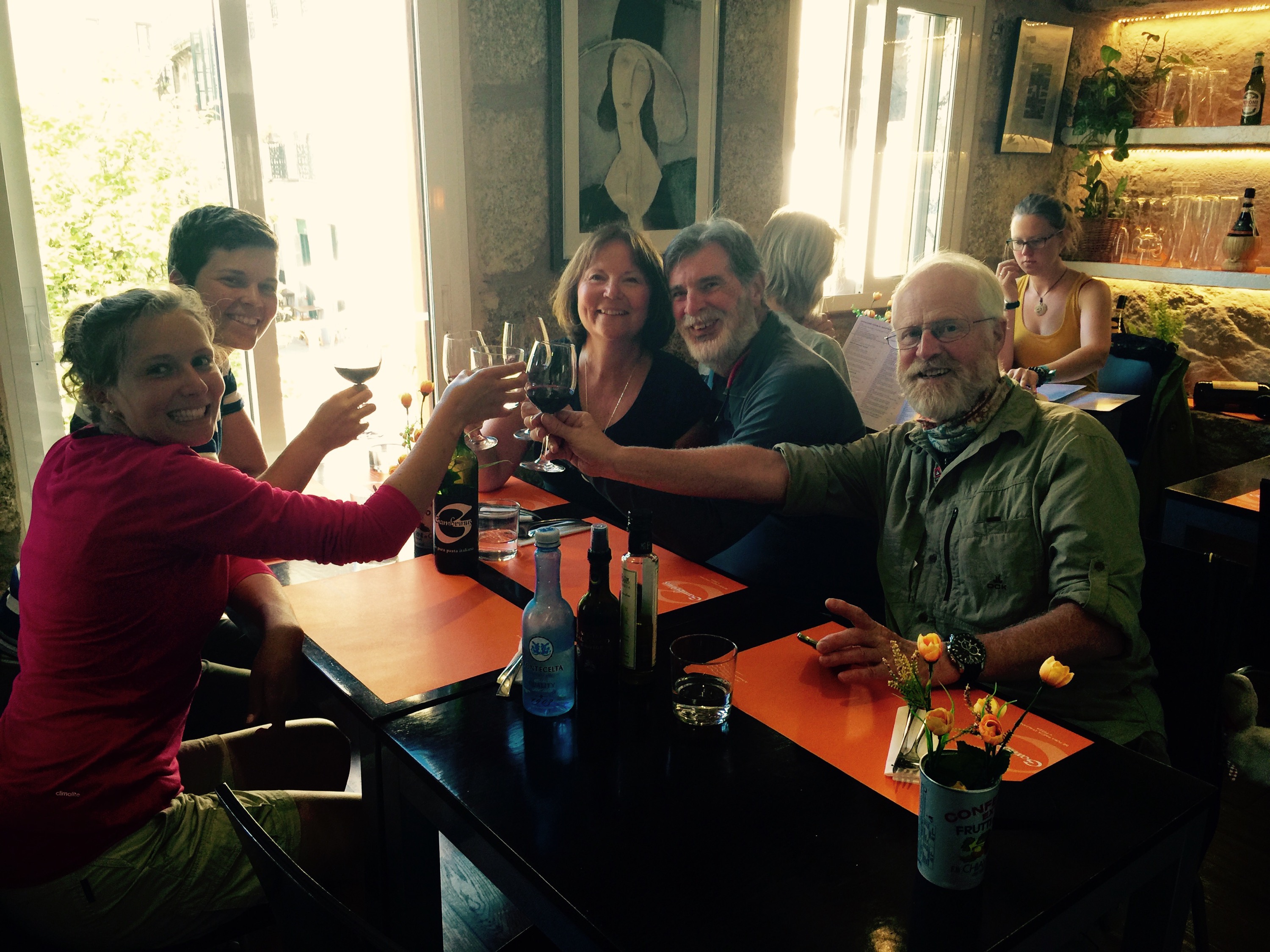 We all met at the Cathedral ( thinking there was an evening pilgrim mass but wasn’t), so bonus… Off to an early dinner! When who should we run into, but Judith chatting with Andreas!!! We were so glad to see her and give her our congratulations in person!