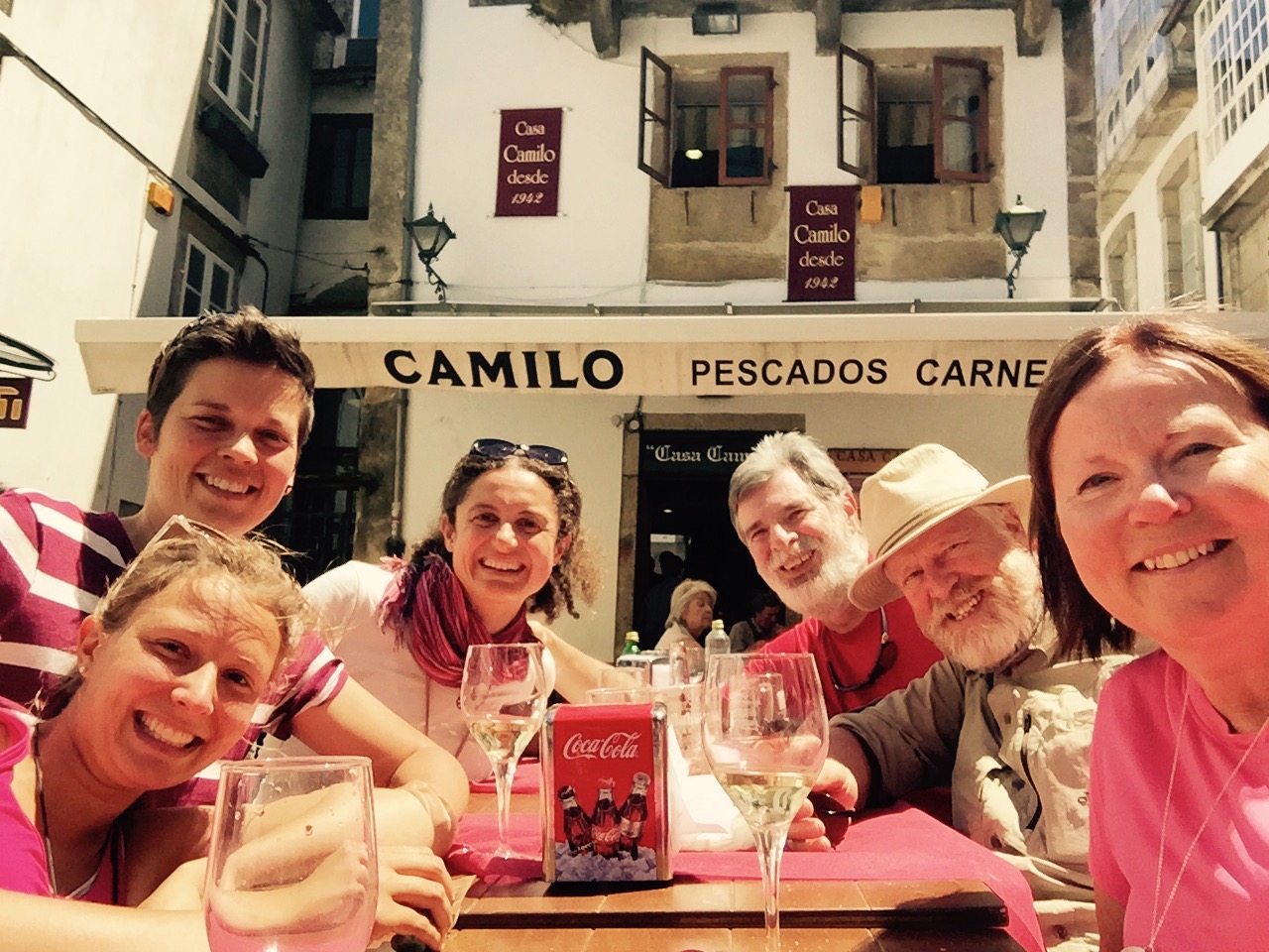 Tomorrow morning is an early meeting with the gang at the cathedral… We will try finding the Pilgrims hymn there as well as visit St James… Lots of touring to do… Dan and I have decided to stay in town rather than head out to Finessterre  by bus… More important to spend whatblittlevtime we have with those new souls we’ve grown to love… And besides… Sandra should be arriving!!! Until tomorrow, I bid you all a good night!