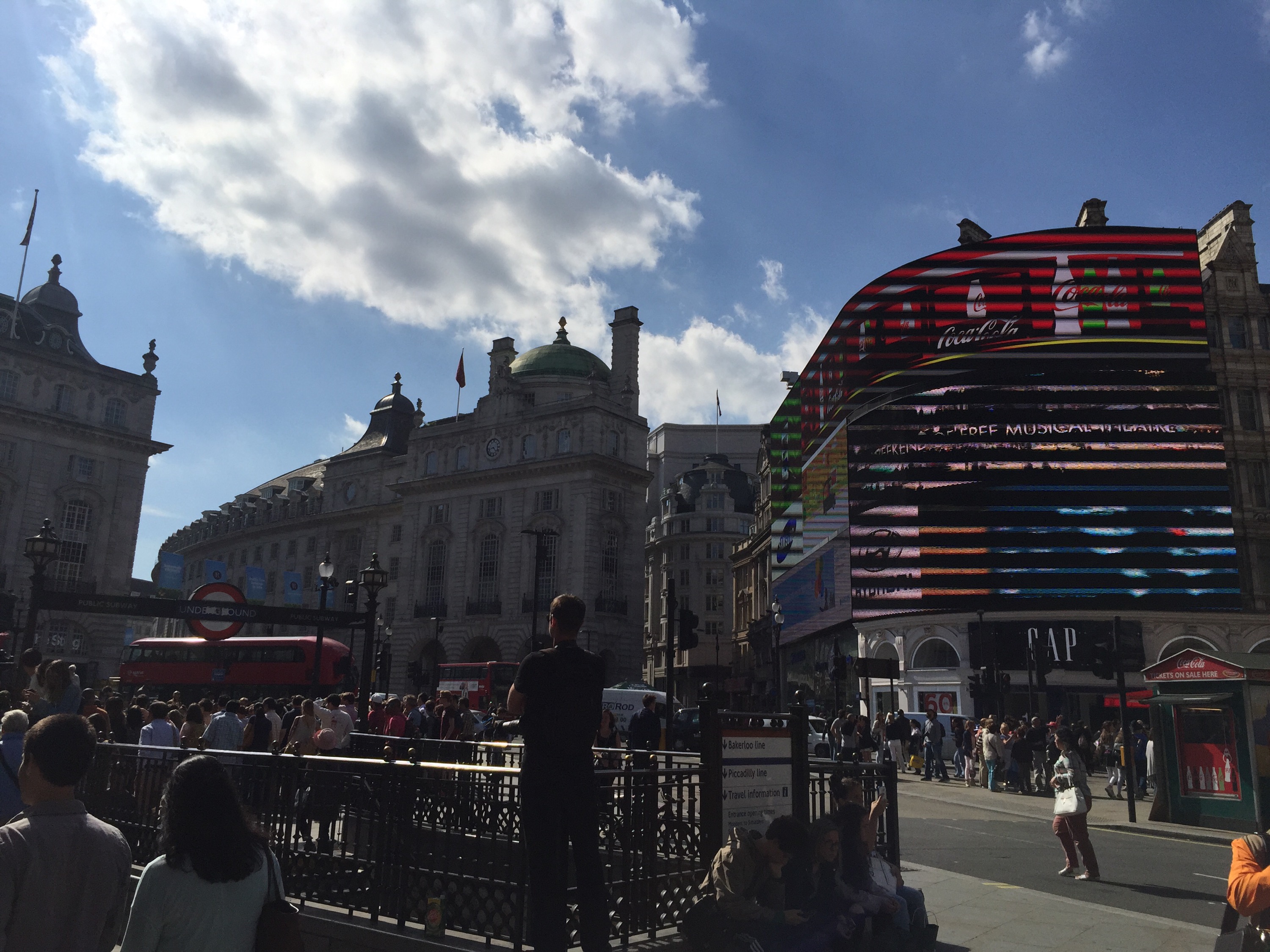 Once we had our full of the preshow, we headed past Canada House and on to Picadilly Circus. And more street theatre and the accompanying crowds!