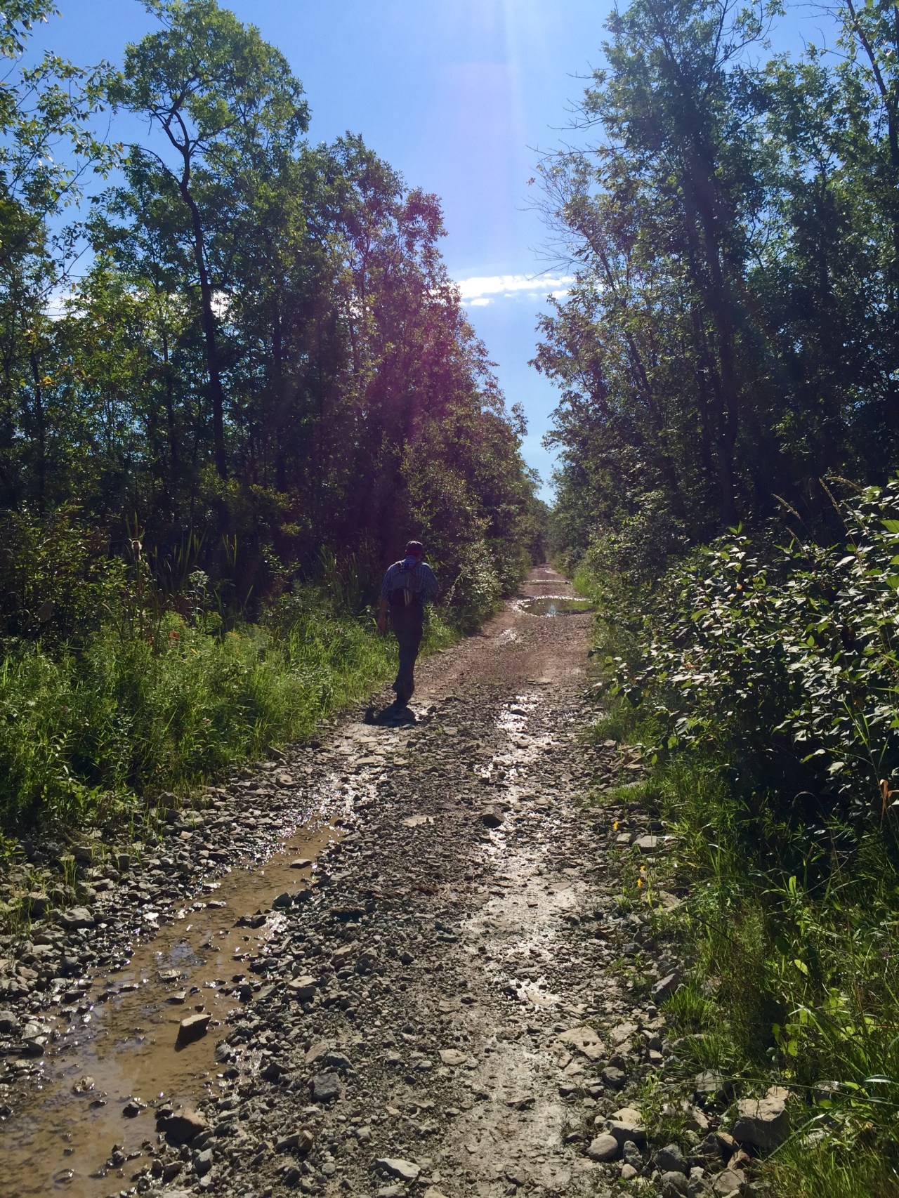 We followed this for another km or so ( through lots of poison ivy I might add) and then we came to a lovely pastoral side road.  This was more like the Camino we knew, and we were able to make some good time along this!