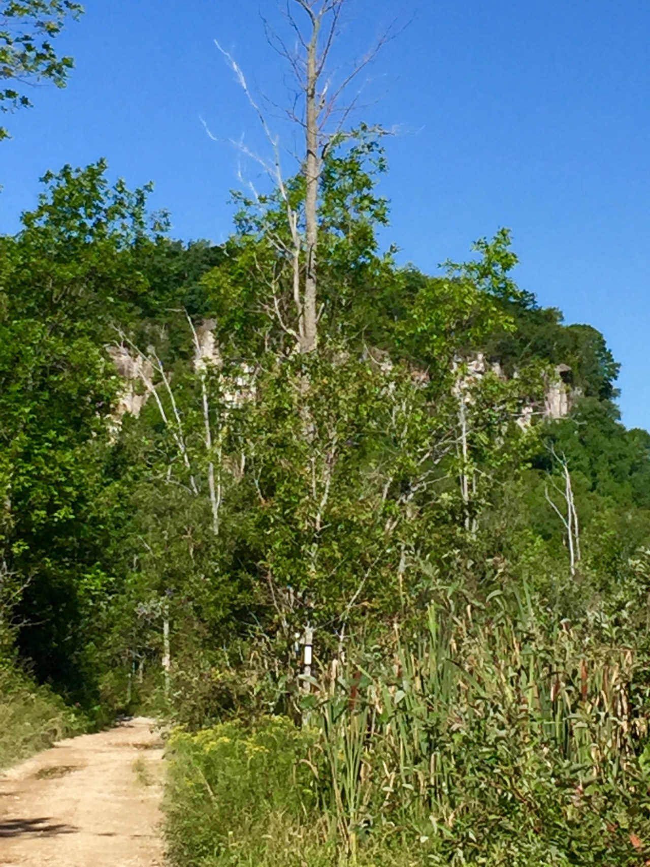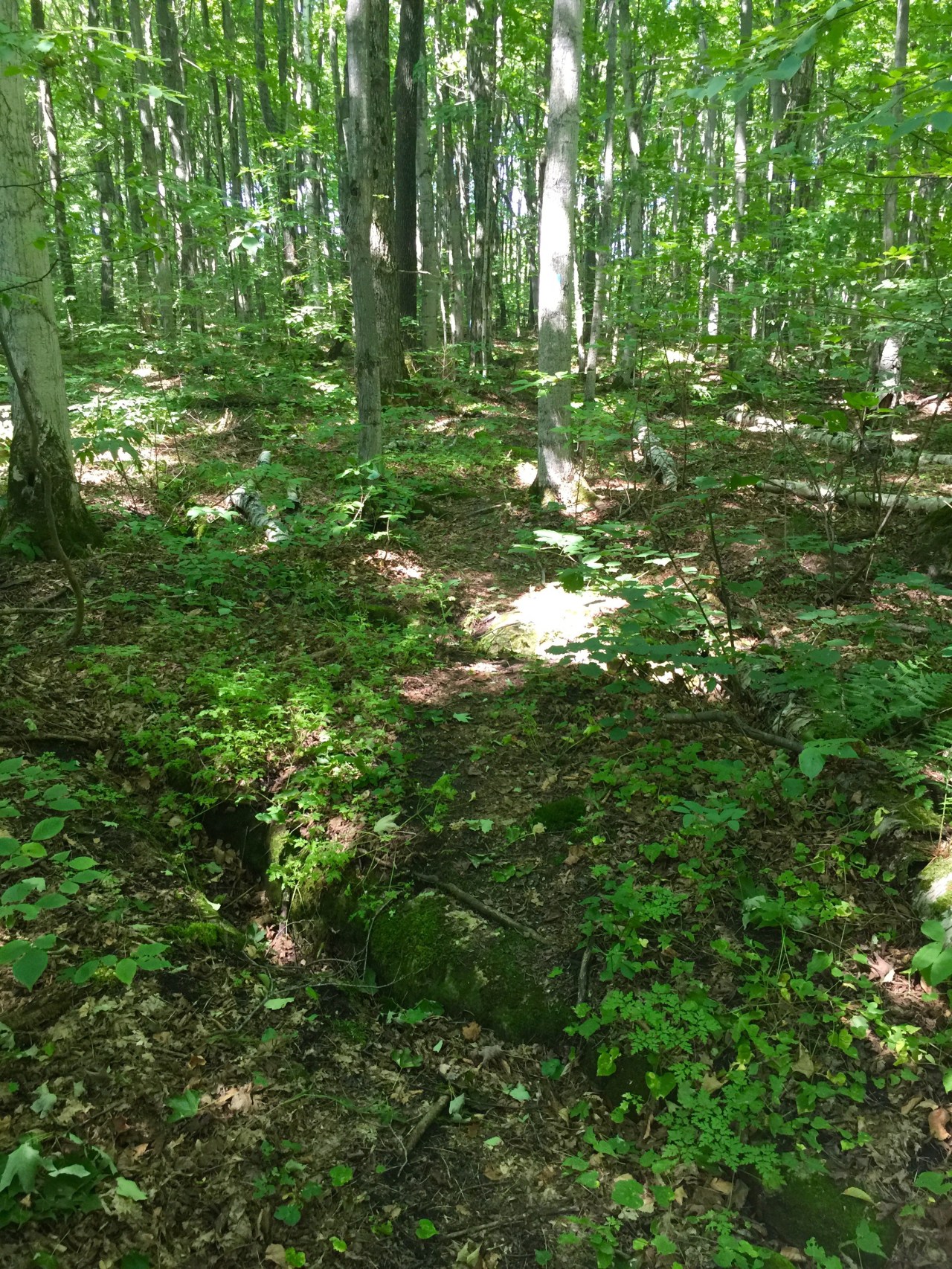 Well enough of these vistas standing on rock outcropping a that had been severed from the escarpment only to have their position anchored on high by a few cedar roots!!! Back into the woods we went! Now at this point, the guide suggested that we would be walking through a lovely grove of birch trees.  Well, the grove was indeed lovely, but with the Karst topography you had the watch every step!  It was like walking through a mogle field ( skiing reference) in the middle of the forest, only the depressions represented 2 to 1 odds that there was a never ending sinkhole!