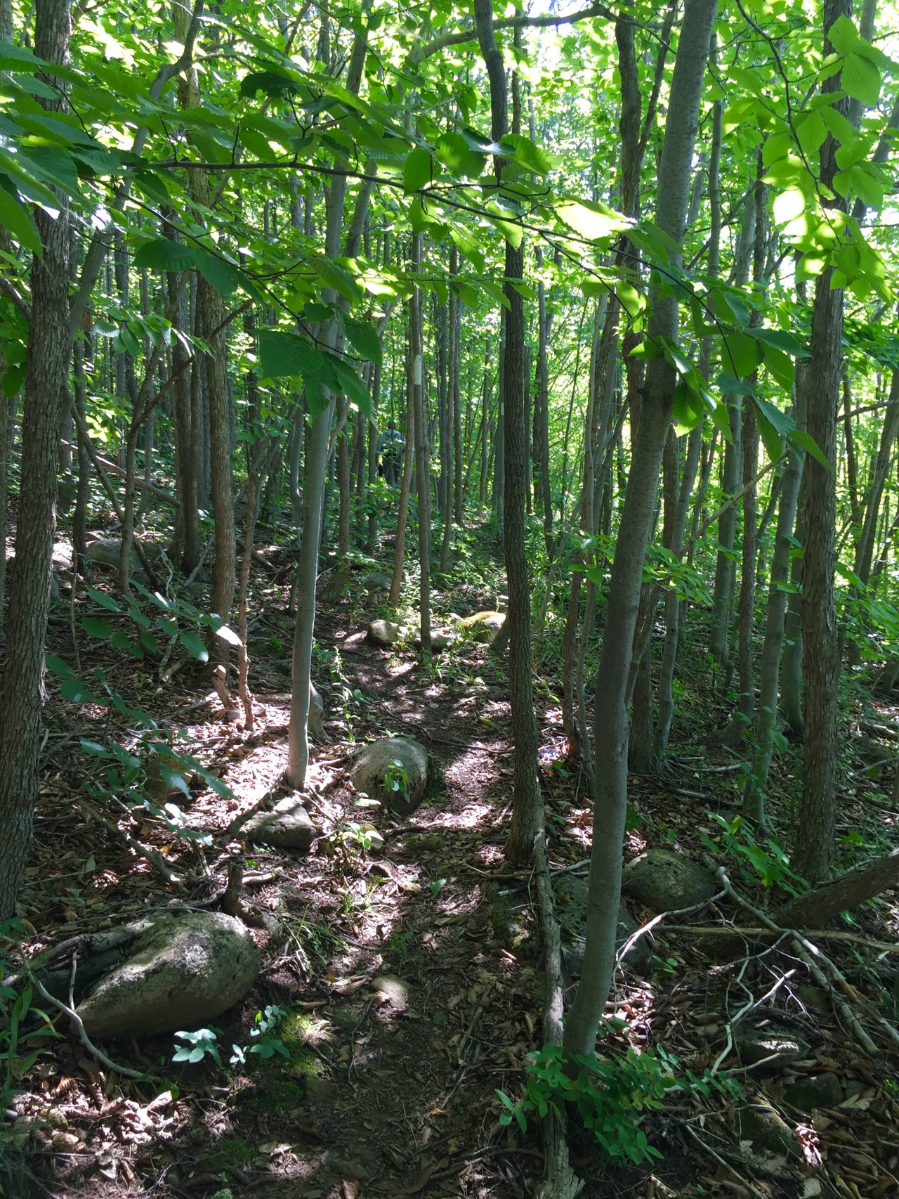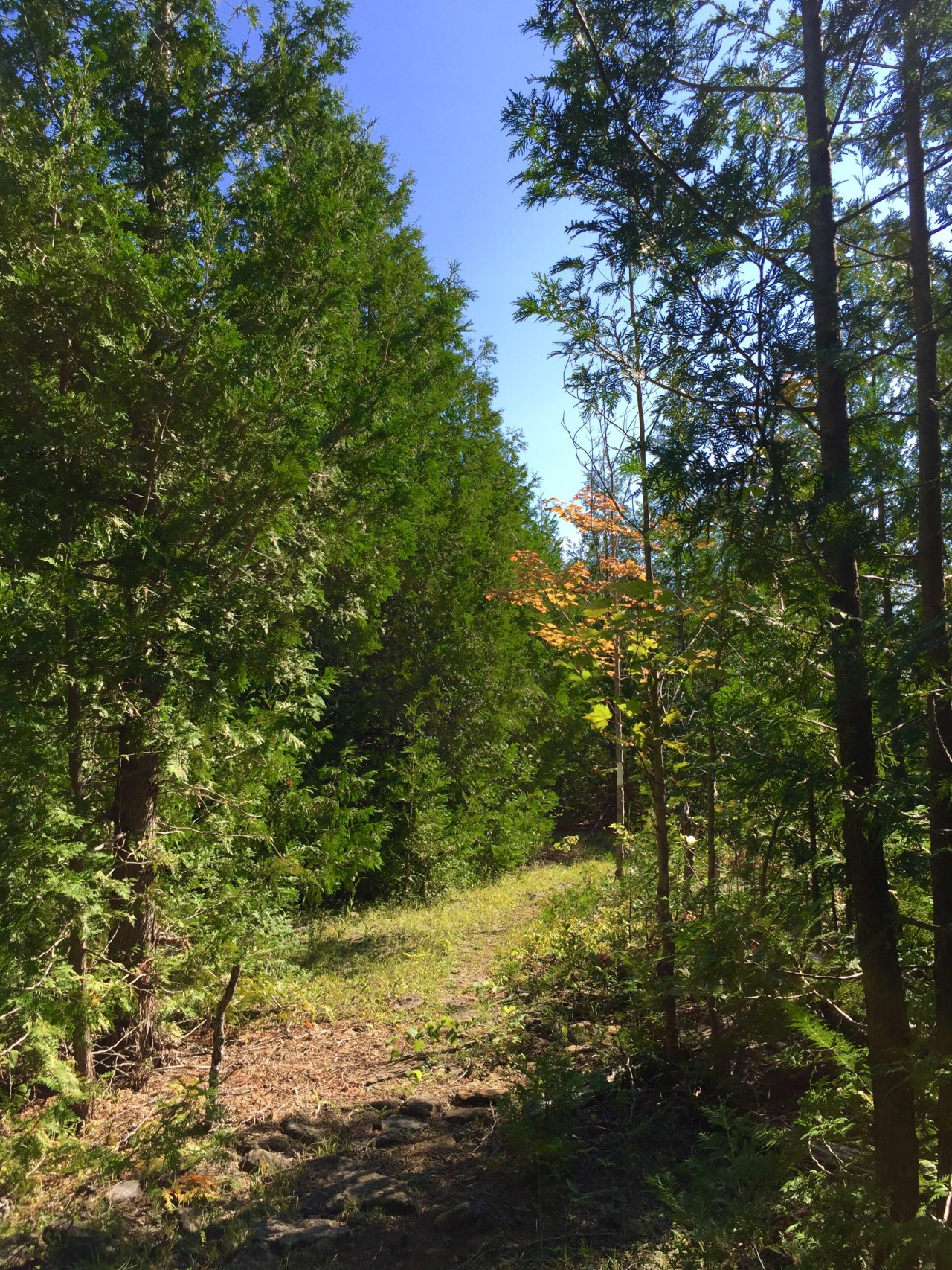 We followed this to near the end, then the trail parted from the road and meandered through forest, sometimes hardwood, and sometimes cedar.