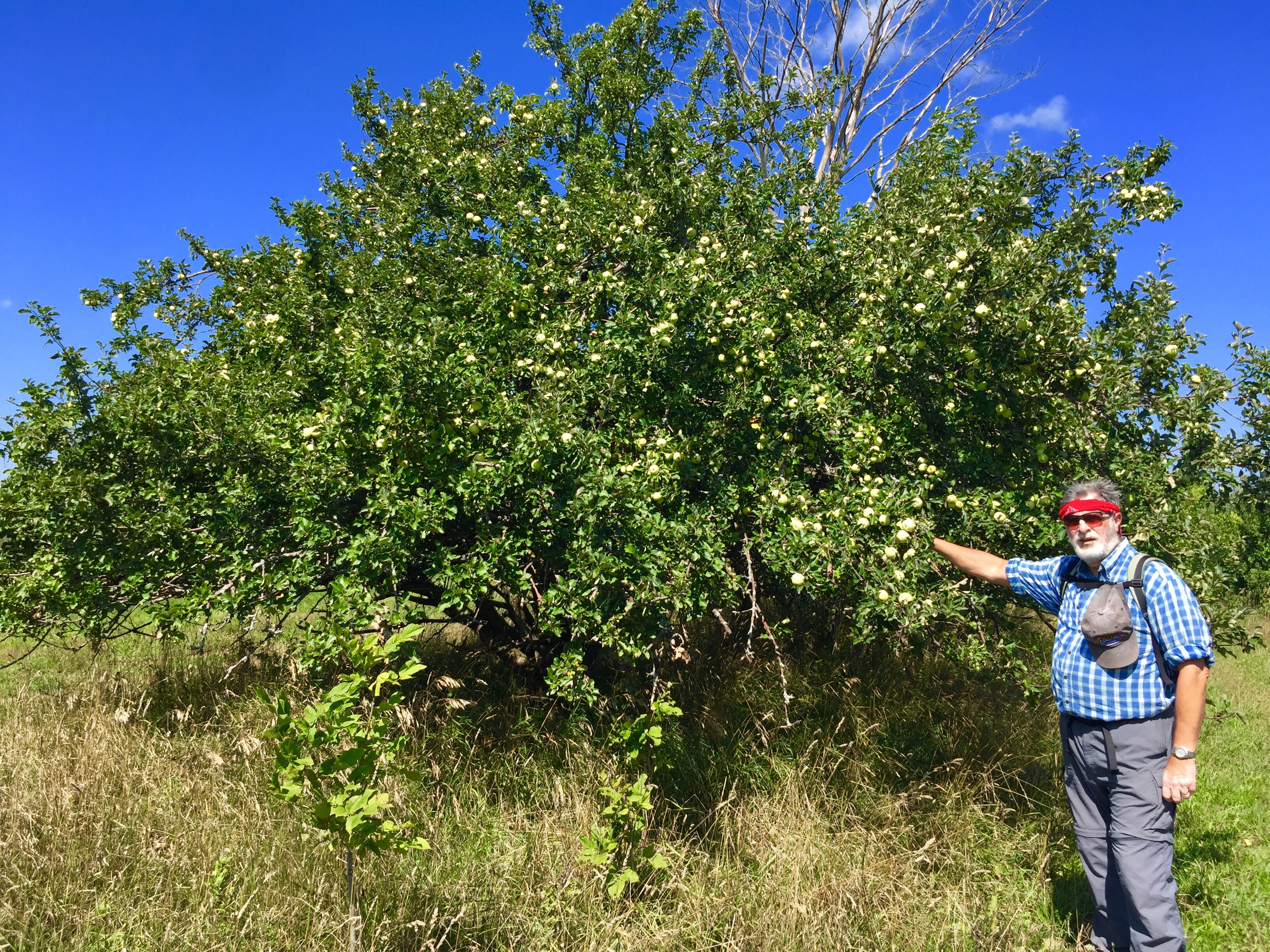 Once we cleared ( safely, because of a fence between us and the dogs) this lane way, we were heading towards the woods.  Lots of ripe apples just hanging wild on the trees!