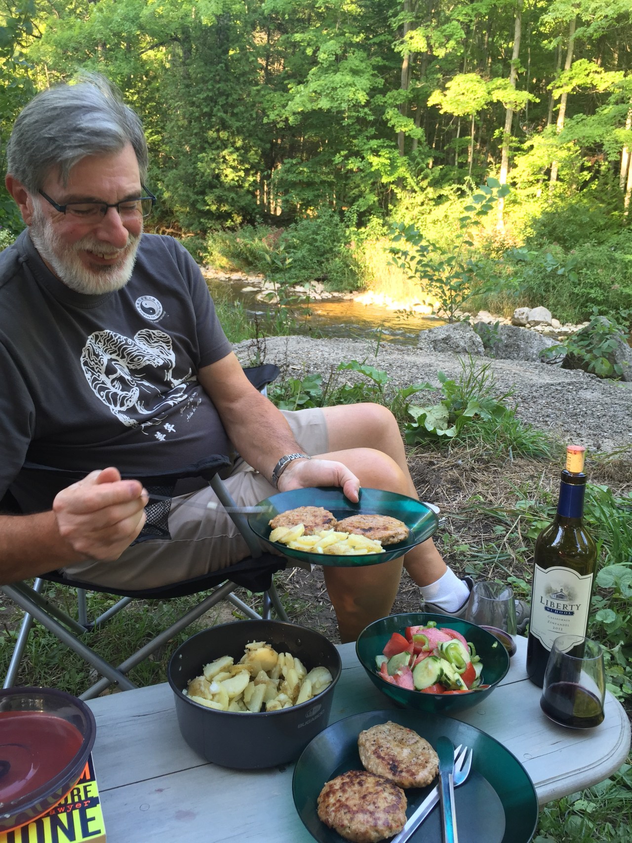 And a couple of fields later we reached our car with about 15 km behind us!  Time to head back into town and get a) an new chair for me, cause the one that was packed was broken, b) some “meat” for Dan, ’cause clearly the carbonara’ wasn’t protein enough for my man, and c) get that drink poured!!! Success on all accounts!!!