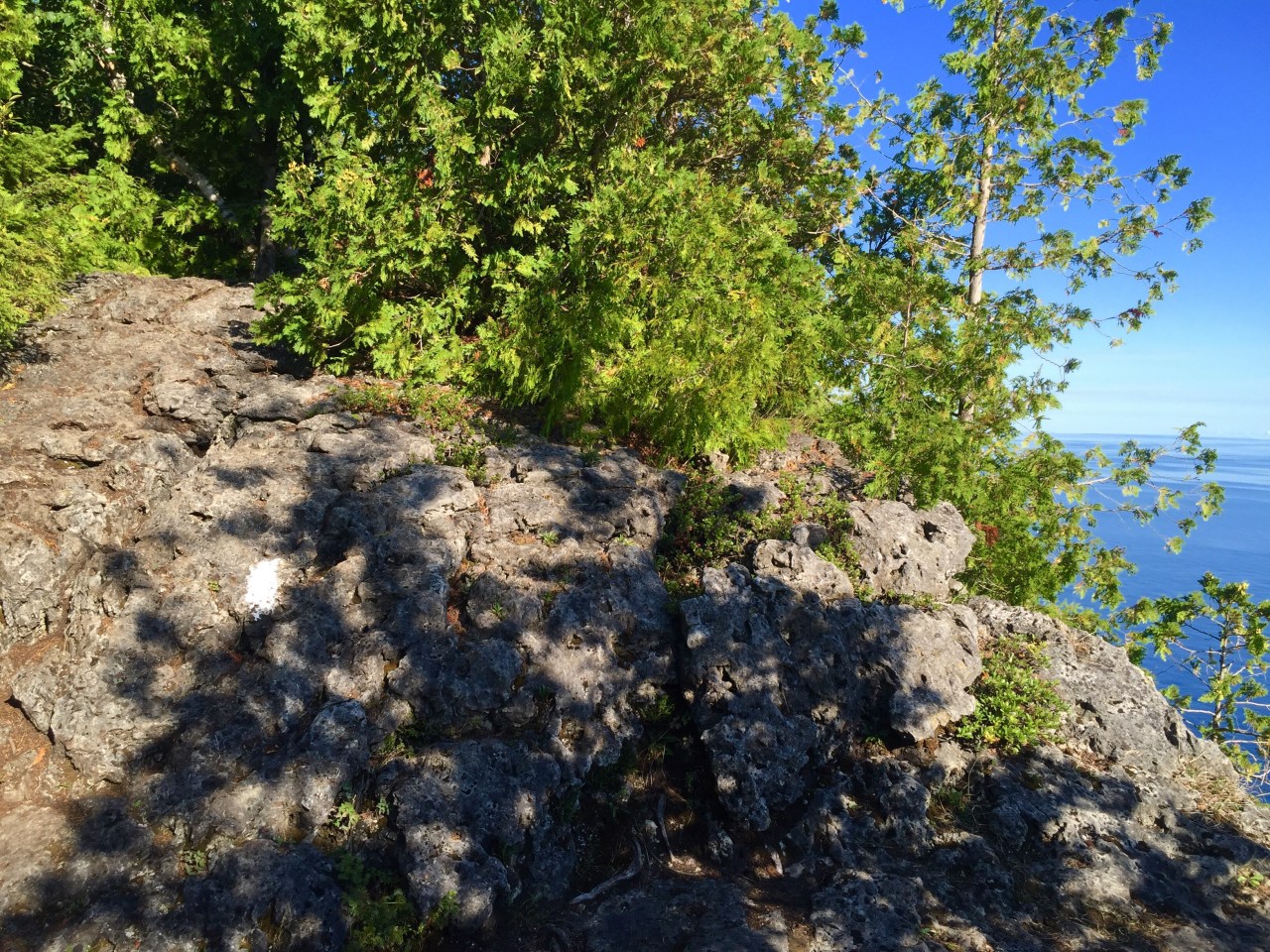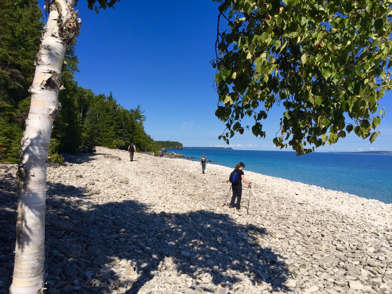 As I said earlier, the path became challenging once again, but in a different way. We had now descending to the shoreline, and were blessed with walking along the scree! Oh joy!!!