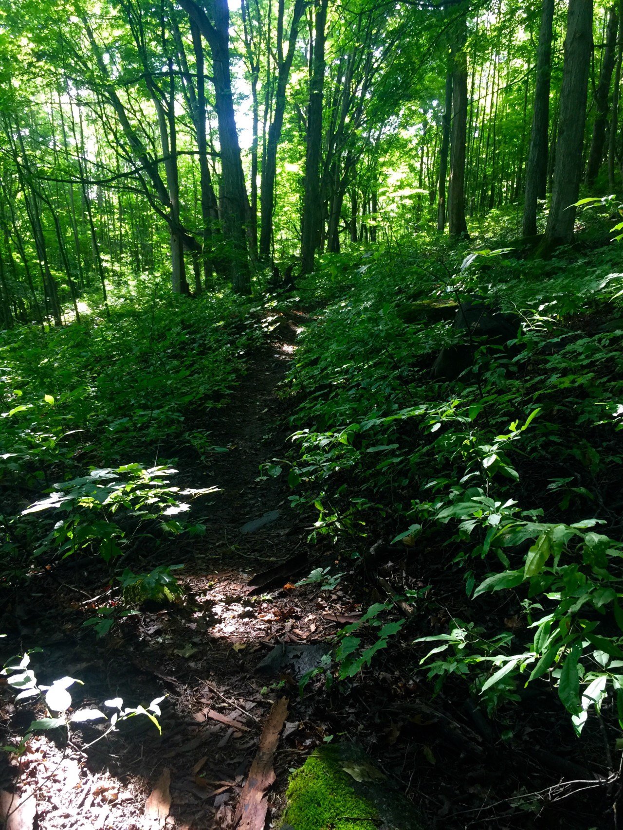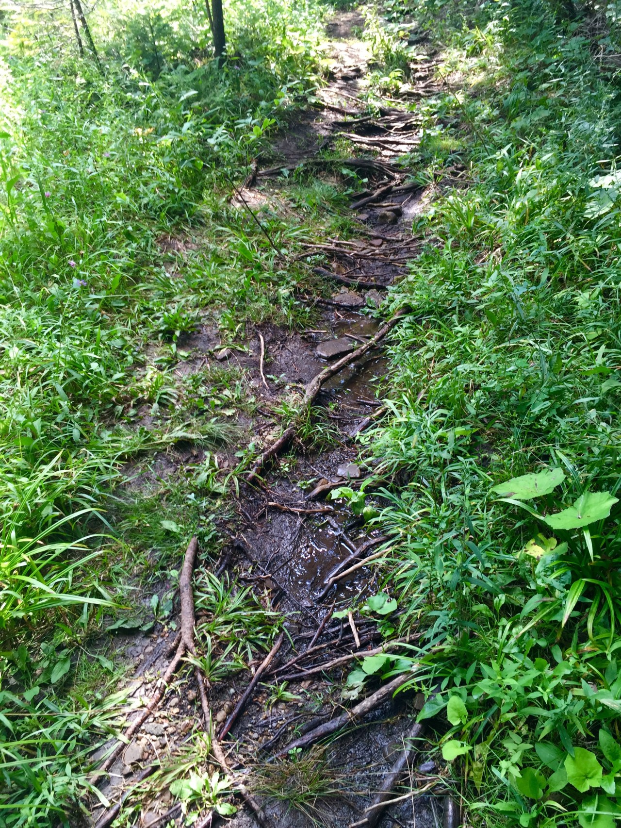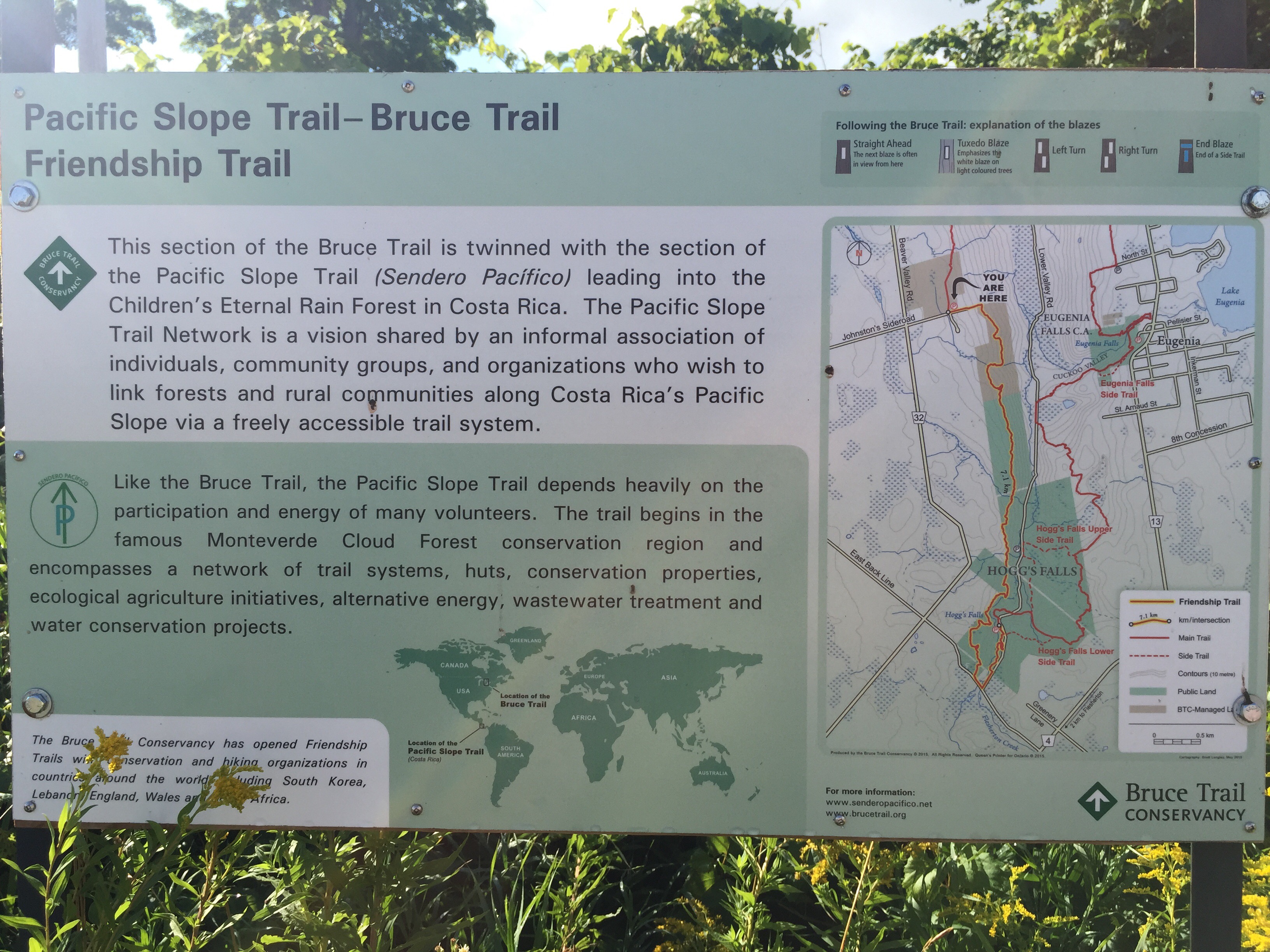 We soon came to a brief exit onto a side road, followed that for about 100 m, and then back onto the trail with an encouraging sign indicating only 1.5 km to Eugenia Falls. We were re energized and ready to make the final push. Little did we know that that push would be entirely up hill!!! Take this picture and multiply by 100!!! ( remember earlier when I said that we did the route backwards???)
