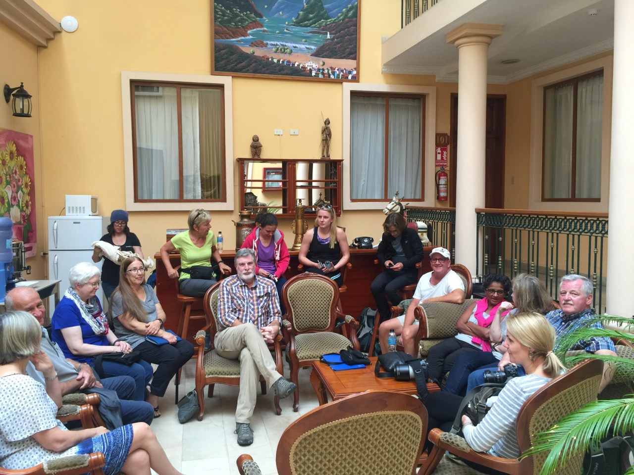 At 2 pm sharp, the gang arrived. All in all there are 15 of us travelling together to the Galapagos tomorrow. We were given our instructions with a strict departure time tomorrow of 6 am. Yikes! I guess we’ll be having an early night tonight!