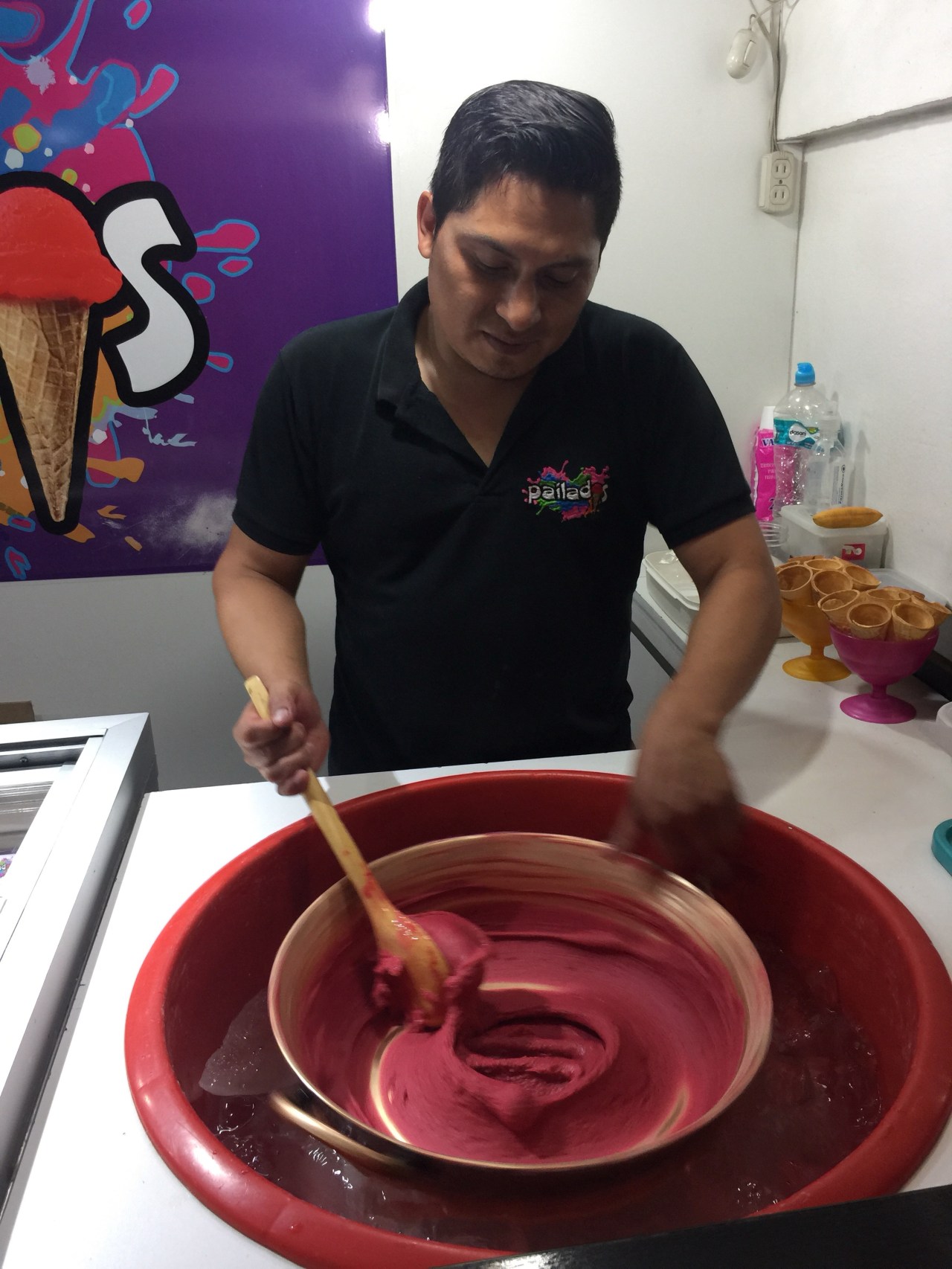Our tour finished up with a bit of a gastronomic overview, ending with the making of Ecuadorian Helado. Here’s the master hard at work!