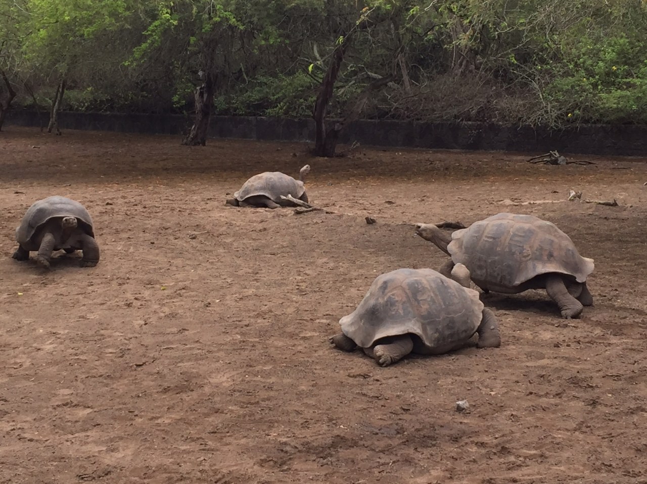 Our next stop was the land tortoise breeding sanctuary, where we saw both the dome back and the flat back tortoises. These animal were poached to a point of near a distinction, first the buccaneers would take them on board because they could live up to a year without food or water, and thus made a ready supply of fresh meat for long voyages; and second the Spanish mainlanders captured them to use their high fat content for oil lamps. It was estimated that there was a population of around 250,000 prior to this poaching. Now with this breeding and protection program there is about 25,000 in the wild. Today, the young are still threatened with introduced species such as dogs, rats and cattle which either eat the eggs/newborns or stomp on the nests crushing the eggs. Without this breeding and release at 6-7 years of age there would not be any tortoises left on these islands.