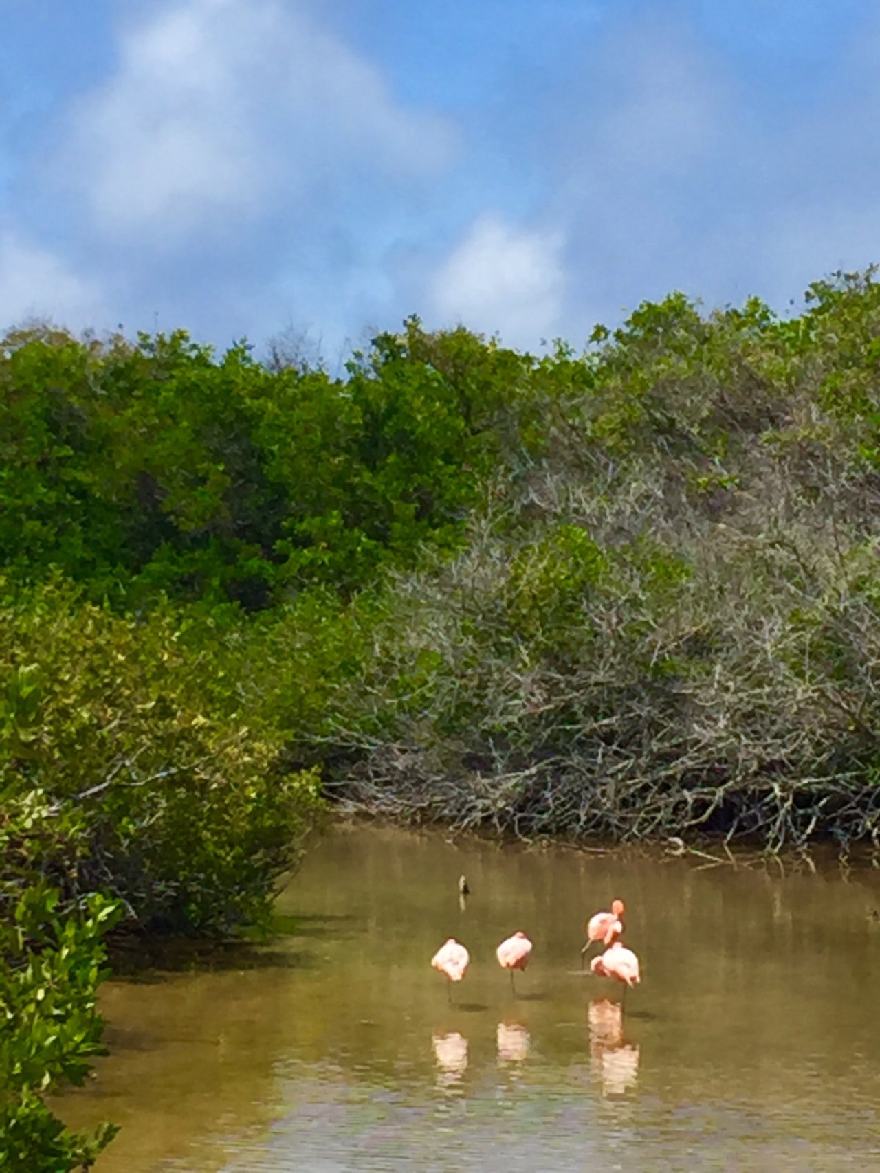 After the breeding centre, we walked along a path that went from a arid forest of poison apple trees through to a mangrove wetland. Again we saw pink flamingos, endemic pin tailed ducks and lots of marine iguana.