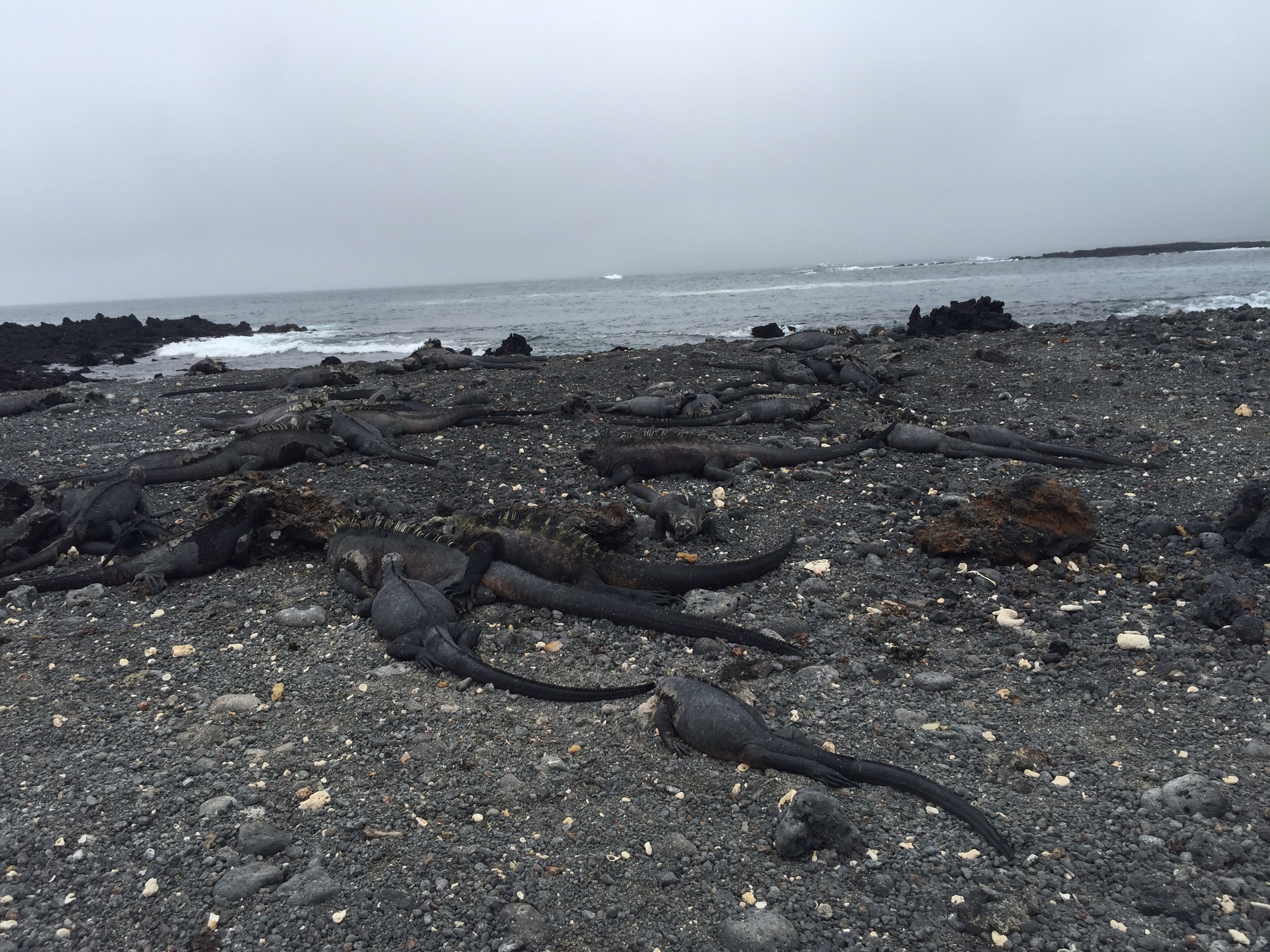 After our swim, we went off to the Las Tintoreras which is a hand full of jagged black lava grottos poking out of the sea. Here we saw countless sea iguanas, both adults and juveniles.