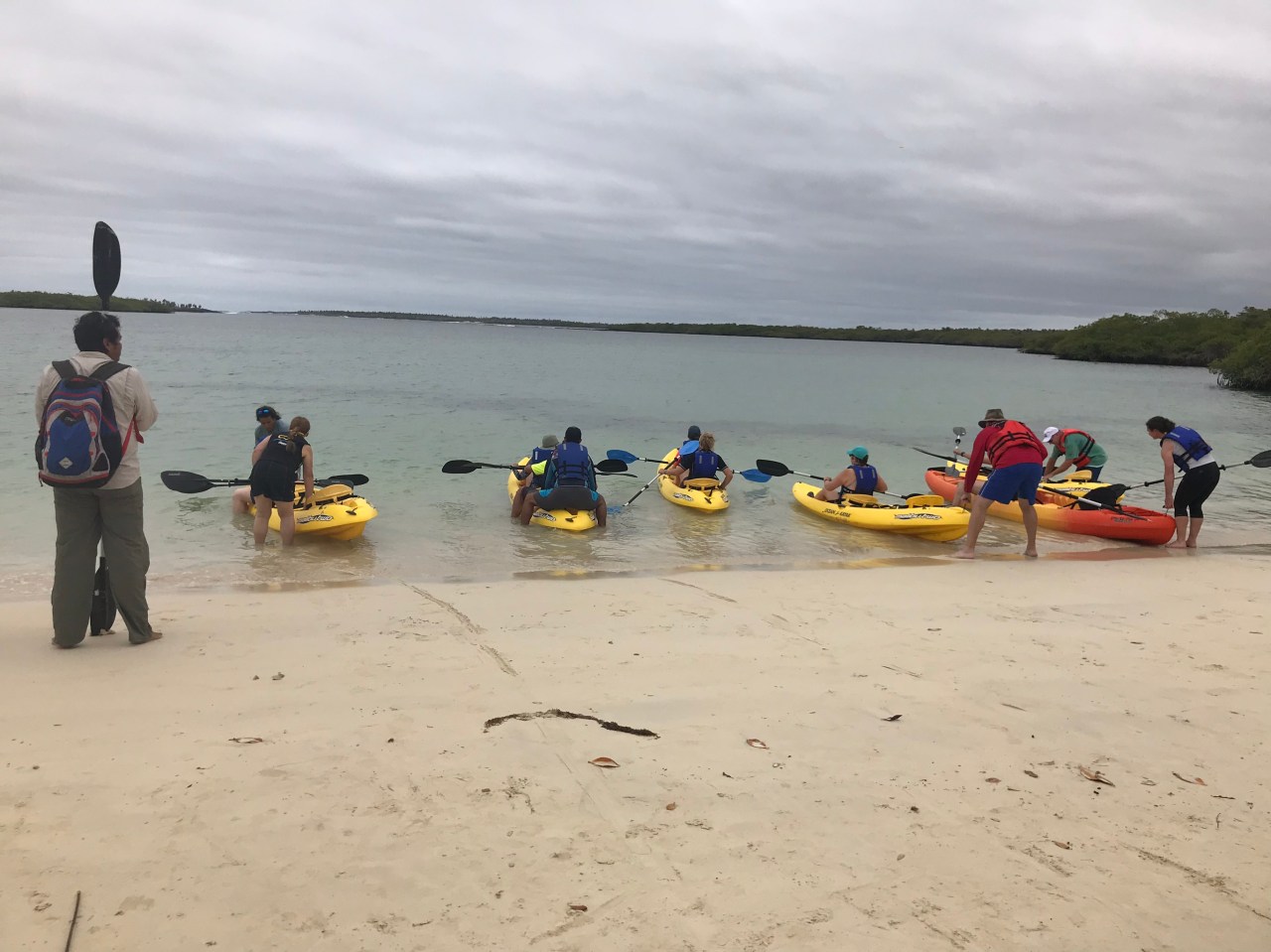 After about 20 minutes we came to Tortuga Bay…an absolutely stunning bay with the softest finest sand that I have ever walked on! (Golf courses don’t count as they sand there is not endemic!). This beach was very open to the ocean and current so swimming was prohibited here (except for some local brave souls and surfers!). We walked the length of this beach, about 1 km until we passed through a small mangrove stand and entered the beach to a very protected sandy beach and bay. It was here that we would embark on our kayaking adventure!