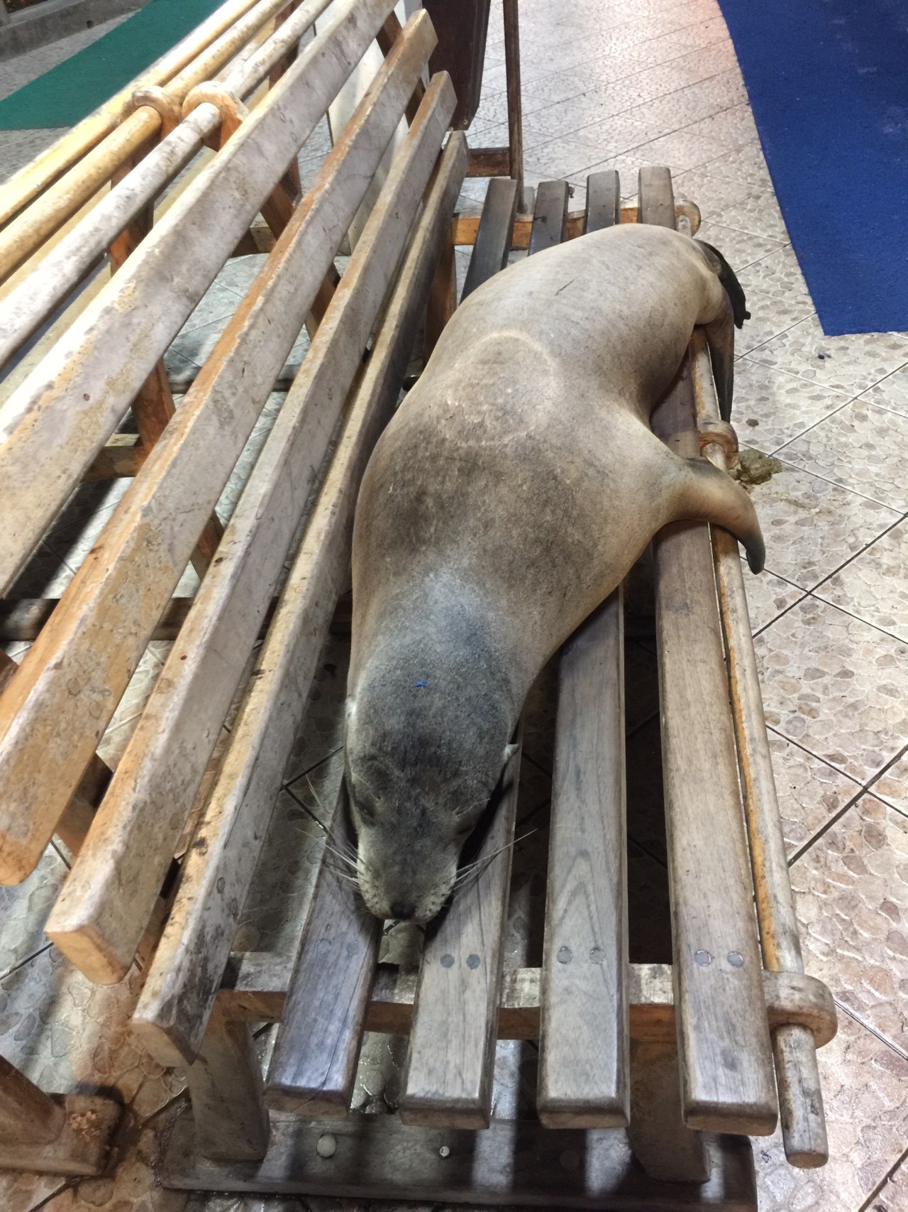 Once we said our good nights, we were off to the hotel, but not before Dan and I took one last detour to the pier to see once again the wildlife in the water. Minnows, sharks, rays and puffer fish ( I think) gave us quite the show. And of course, our friendly seals were once again taking over the pier and benches as they laid down for a good night’s sleep! I don’t think we’ll ever see a place like this again! ( by the way, when I was on the deck earlier today writing the first part of this blog, a Darwin finch lit on the bench right in front of me…it then hopped onto my toe, and then perched on my iPad. It wasn’t coerced with food, it was just curious and totally unafraid of humans! Amazing place!)