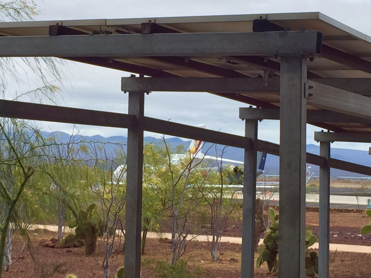 After waiting for a couple more groups to board, we were off on our 5 minute crossing. Once we arrived on Baltra, it was a free for all to get our luggage and get onto the bus. We were packed on cheek to jewel, but the ride was fairly short to the airport proper. As we drove along we could see the remains of the airbase that occupied this barren land in the mid 1940’s. Other than the airstrip all that remained were concrete pads where buildings once stood. The Galapagonians, being quite resourceful, gather any and all building material that could be disassembled and took to other islands to build homes etc. Recycling was popular on the islands even then!
