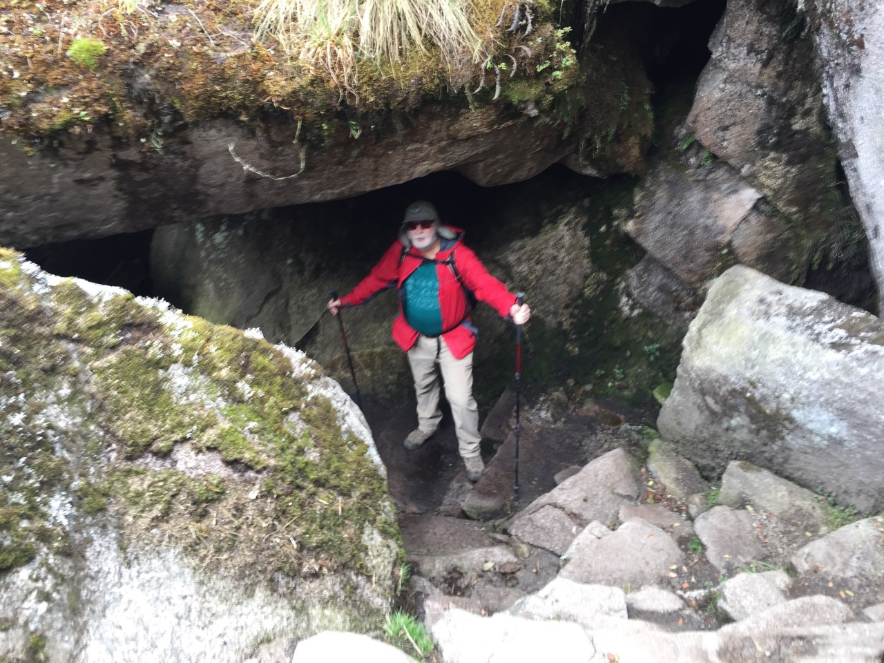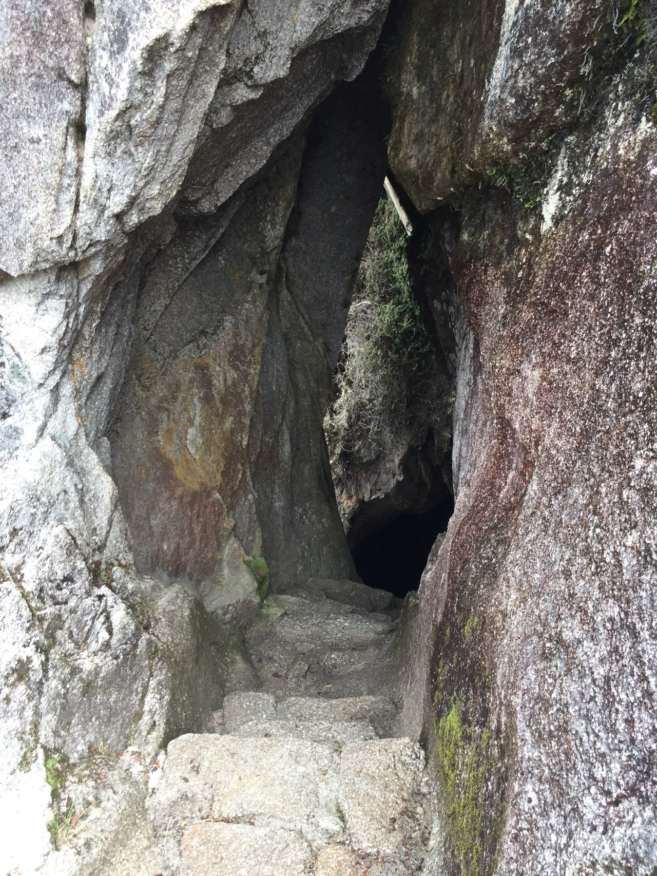 As we descended from this first pass of the day, we came to a tunnel on the path. Yes, they had actually taken advantage of a natural cave / overhang and build stairs through this interesting ( but a little precarious) rock structure.