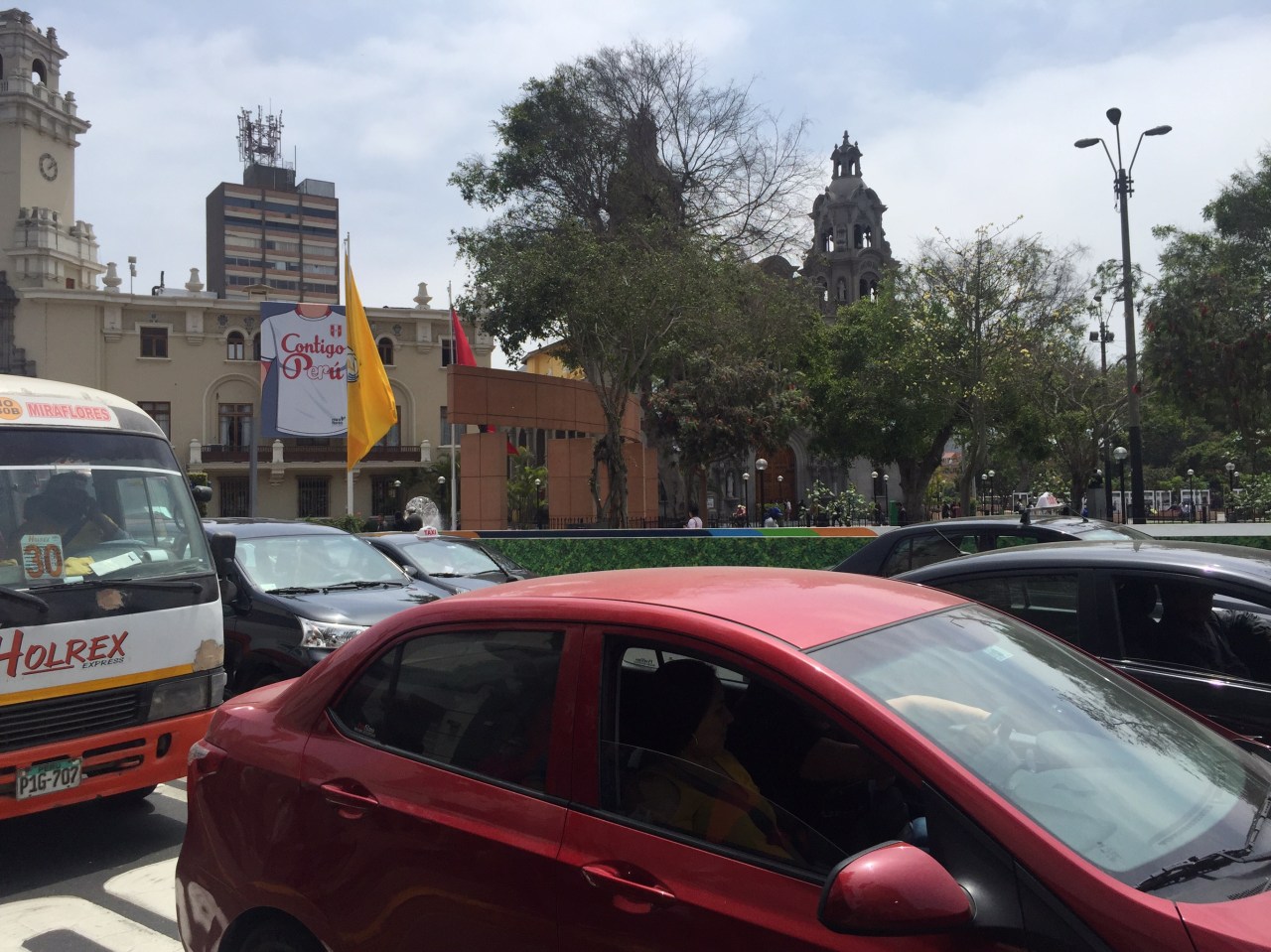 With our senses duly assaulted, we moved south through the streets and listened to the traffic and rhythm of the city. Car horns integrated with old cultural buildings, traffic was bizarre! ( could have something to do with Peru playing an elimination round against New Zealand to qualify for the World Cup tonight at 10:30…everyone seemed anxious to get their stuff done and get ready to park in front of the TV for a few hours!
