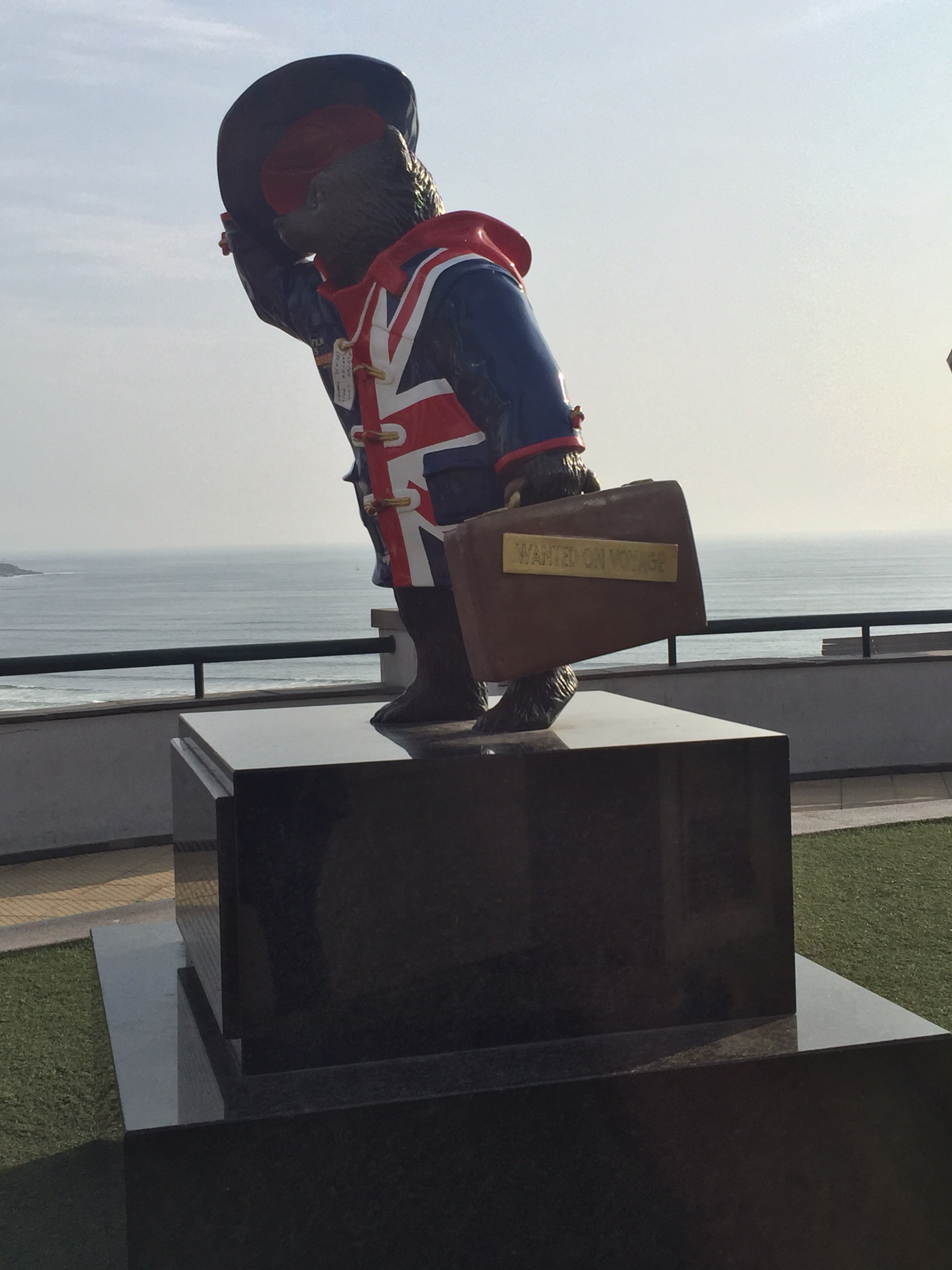 Our walk after our meal gave us one last look at the ocean here in Lima, as we made our way back to our hotel. We also came across and interesting statue of Paddington Bear…who is apparently Peruvian!