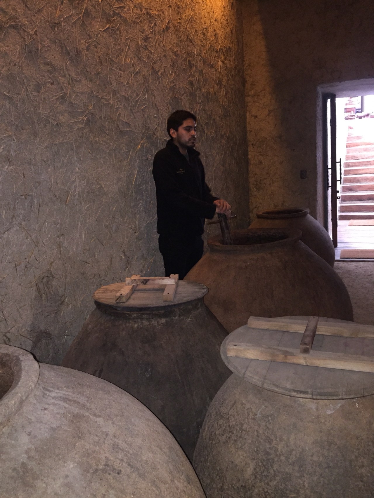 Once fermenting was done, they moved the wine to oak barrels to age.