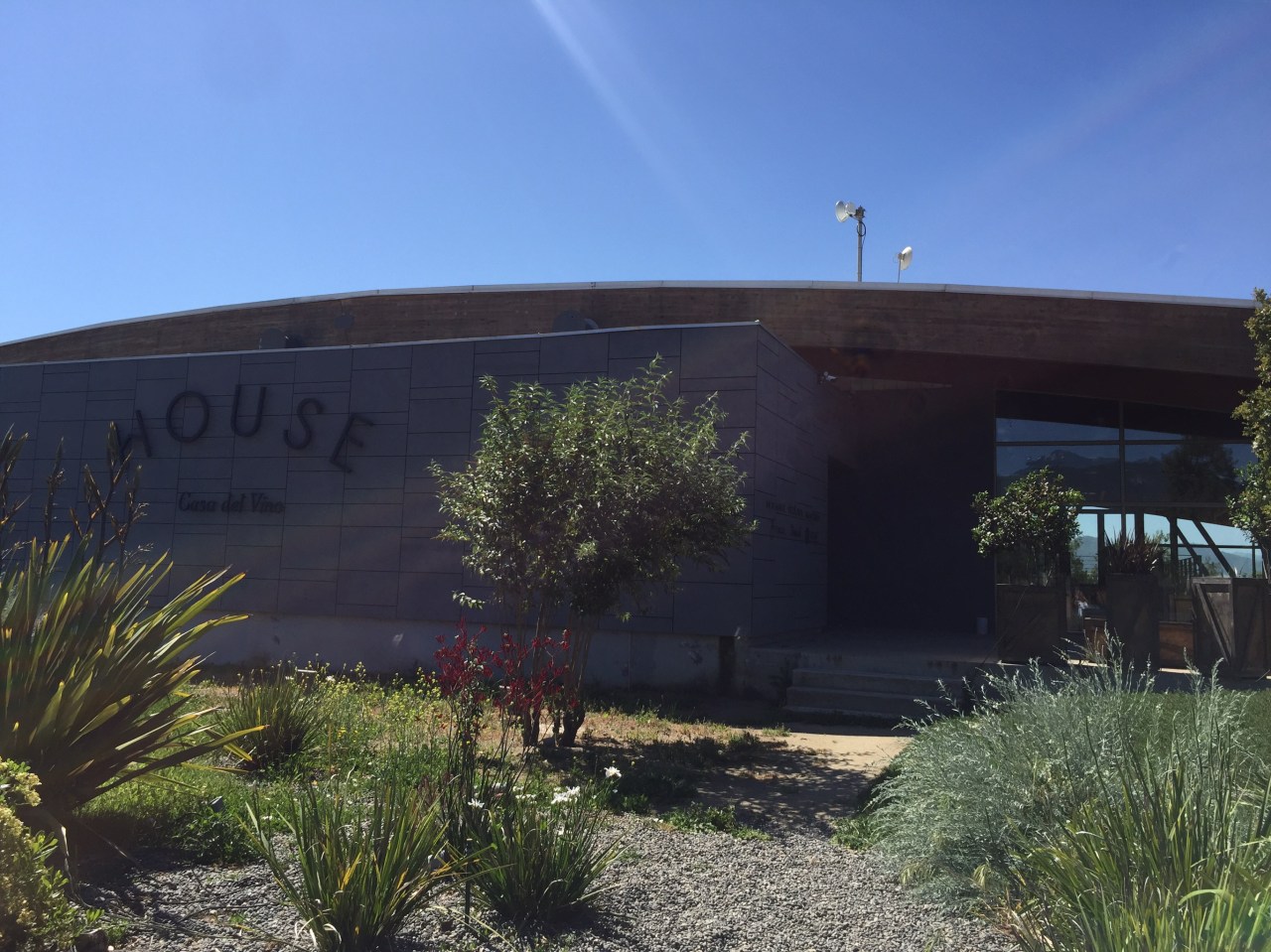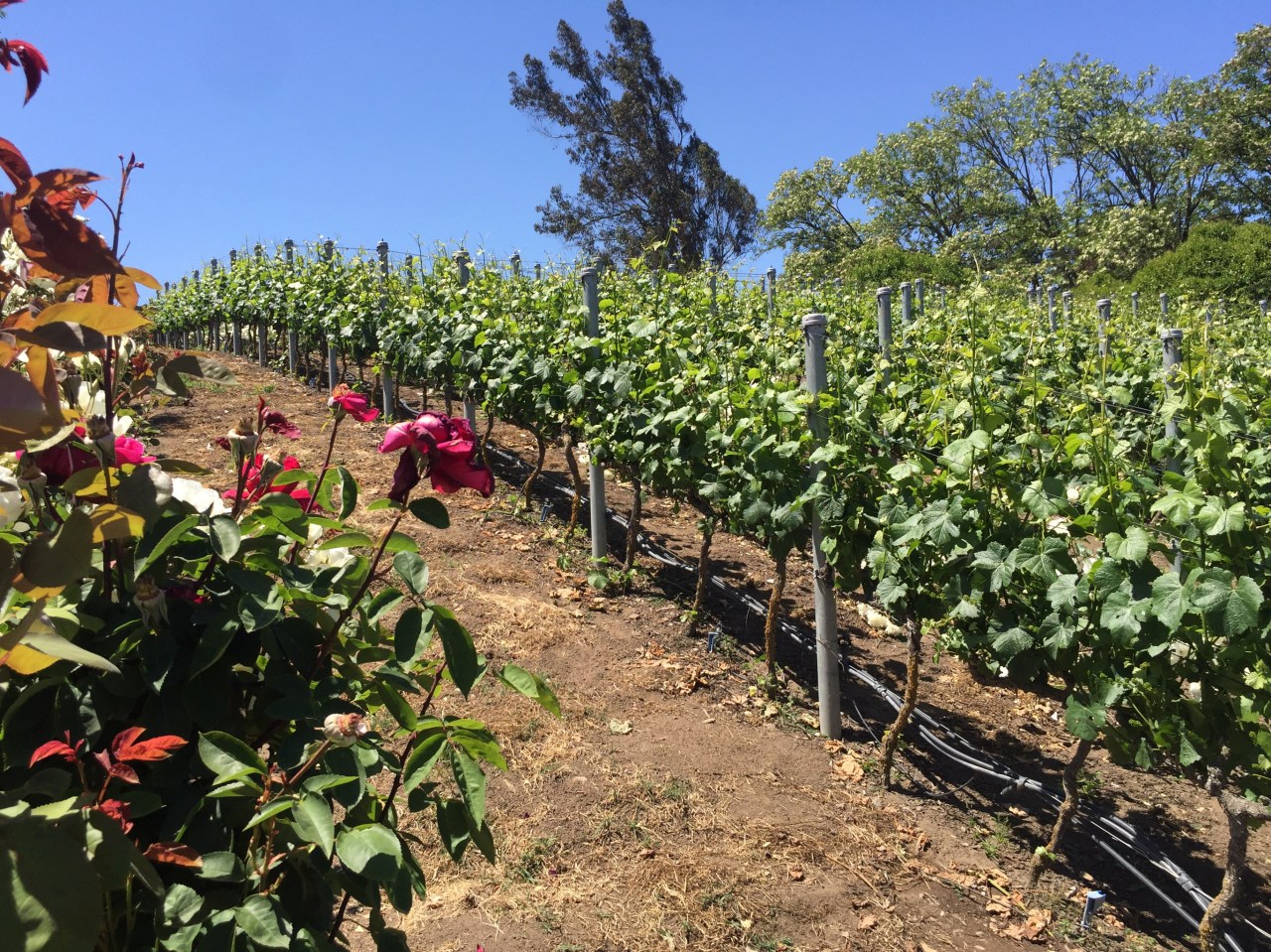 At one point we saw an interesting vineyard curving up a hill, and discovered that this was just a natural cooling roof for their barrel aging room!