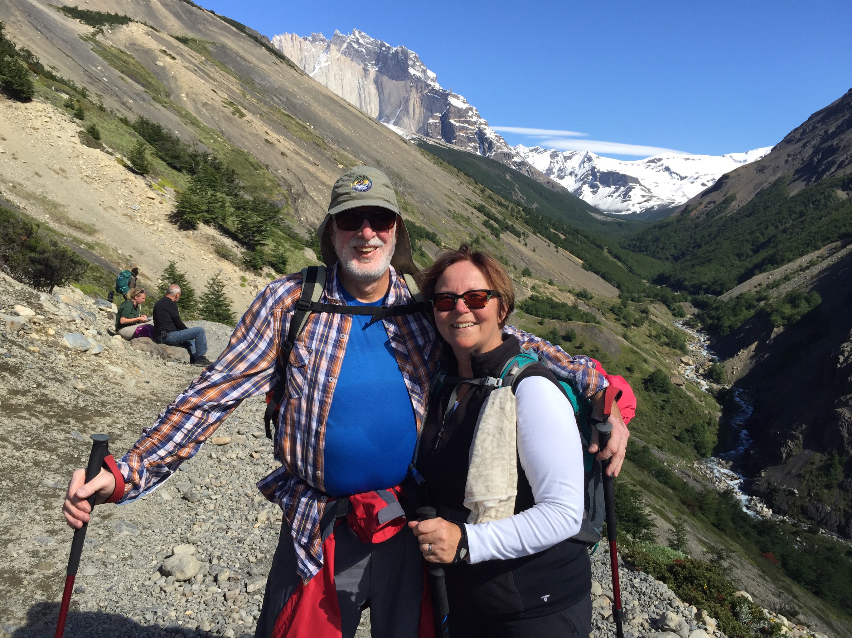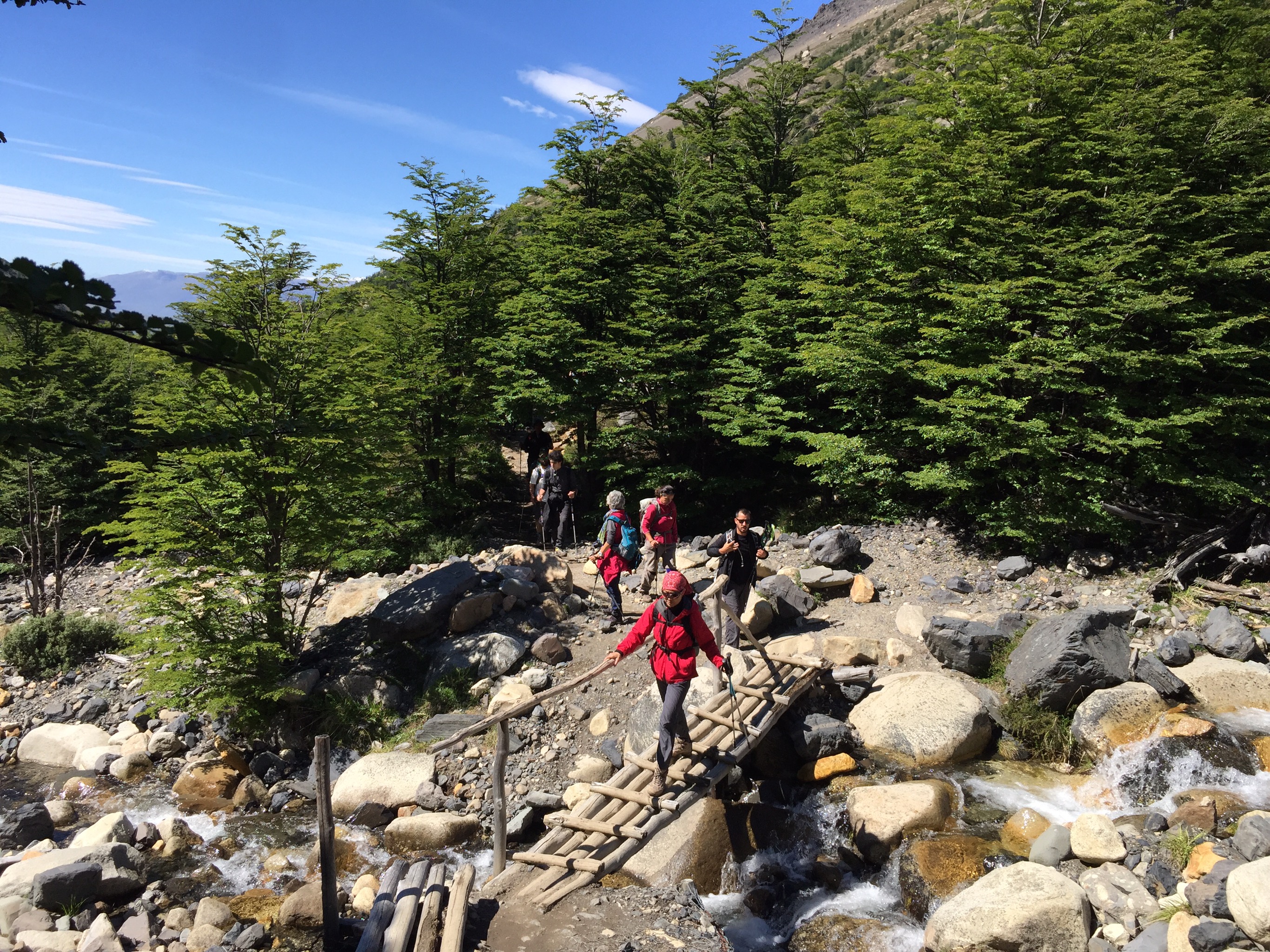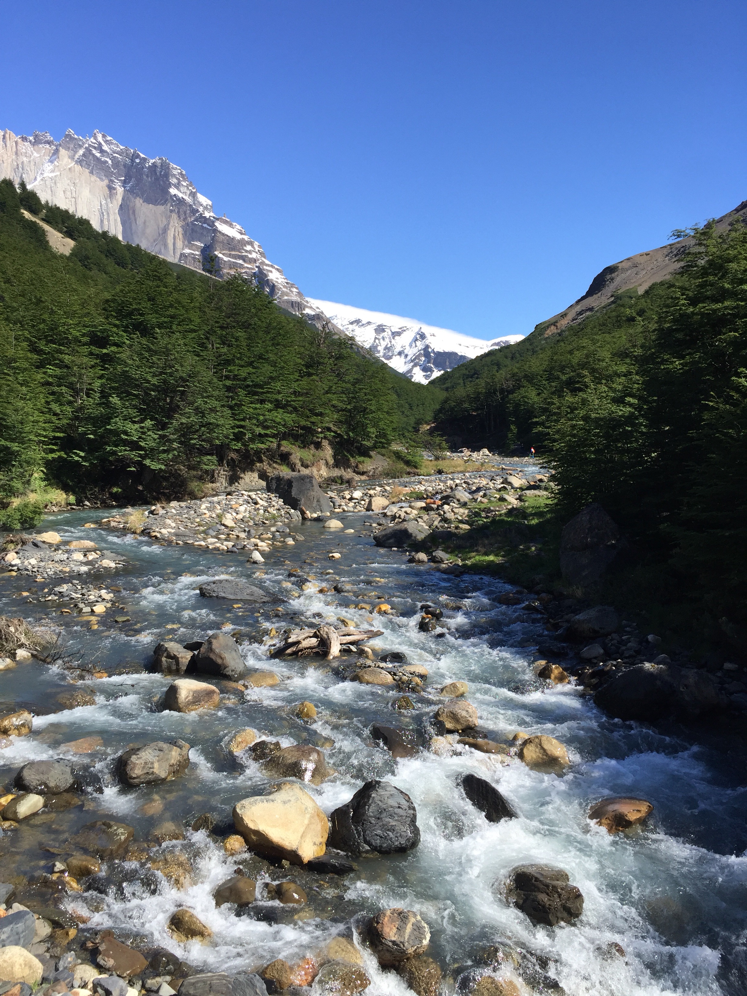 As we neared the bottom of the valley, Dan pointed out an incredible sedimentary hill that had been infused with igneous rock at most interesting angles! It’s hard to get a concept of height anywhere along here…suffice it to say that our efforts that day were the equivalent to climbing up and down 420 flights of stairs…and that only got us to the base of the Torres Del Paine!