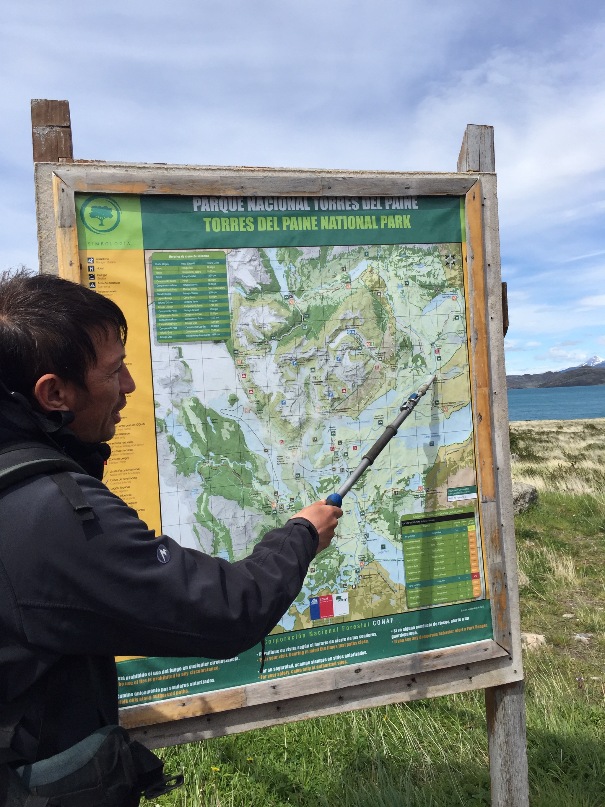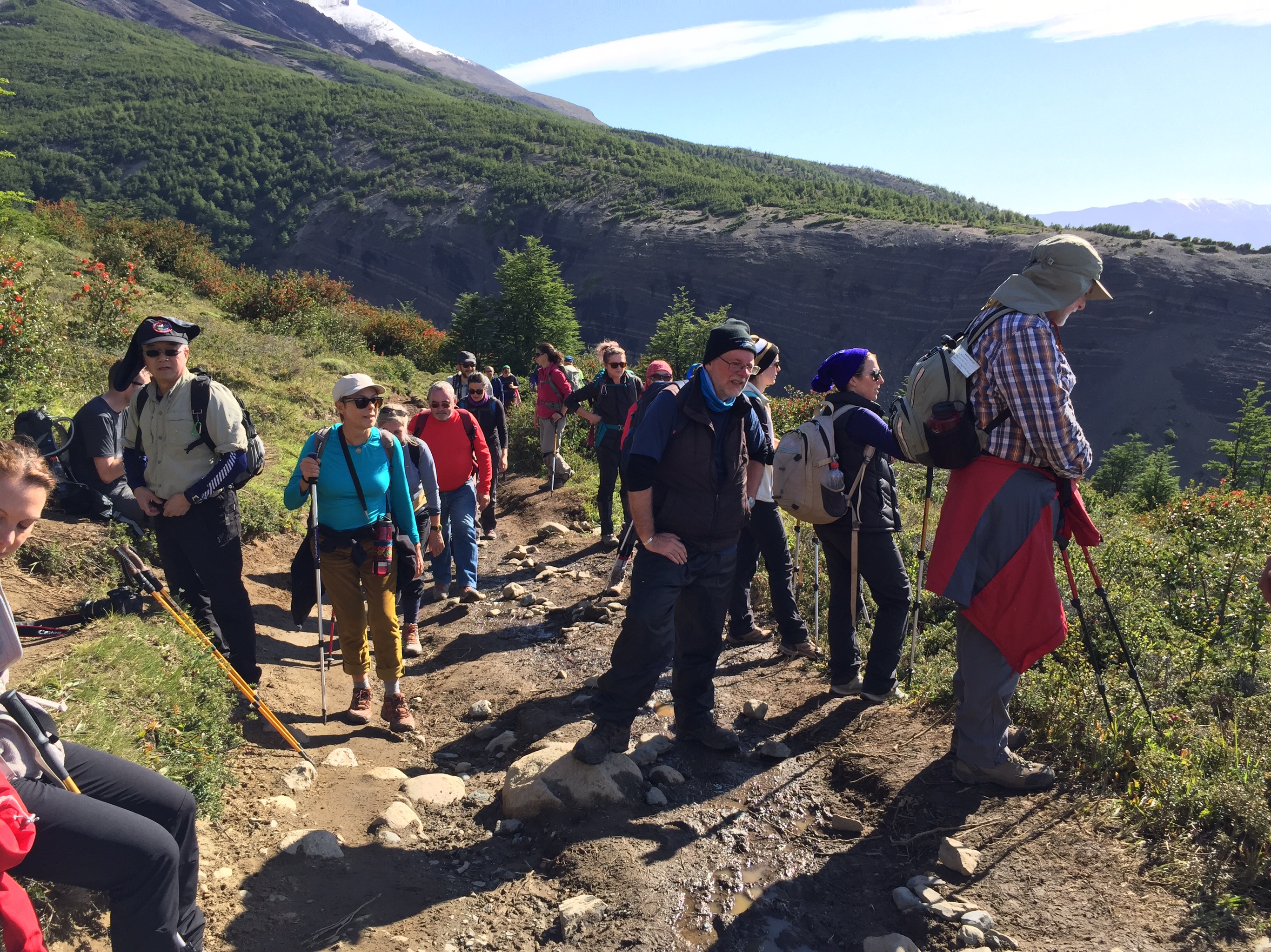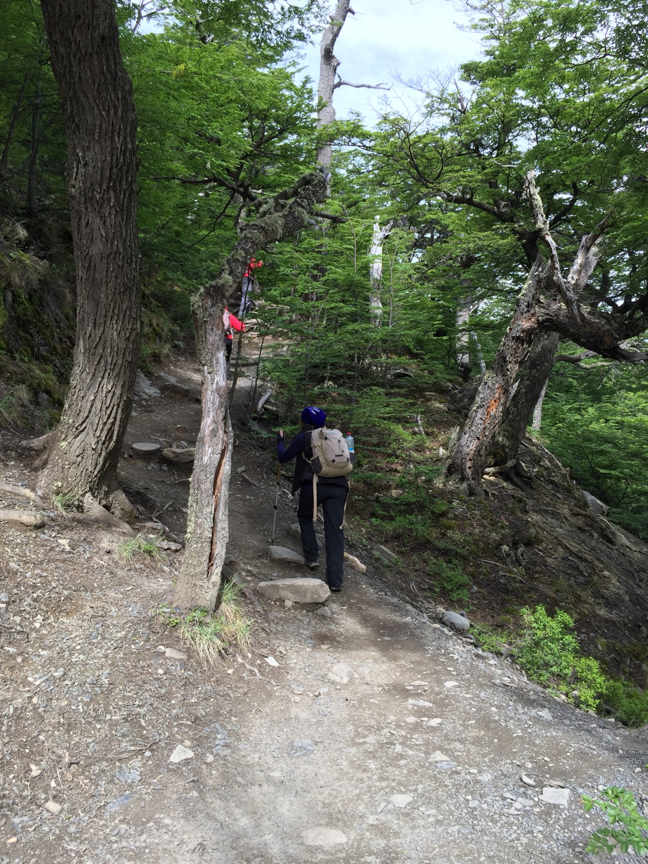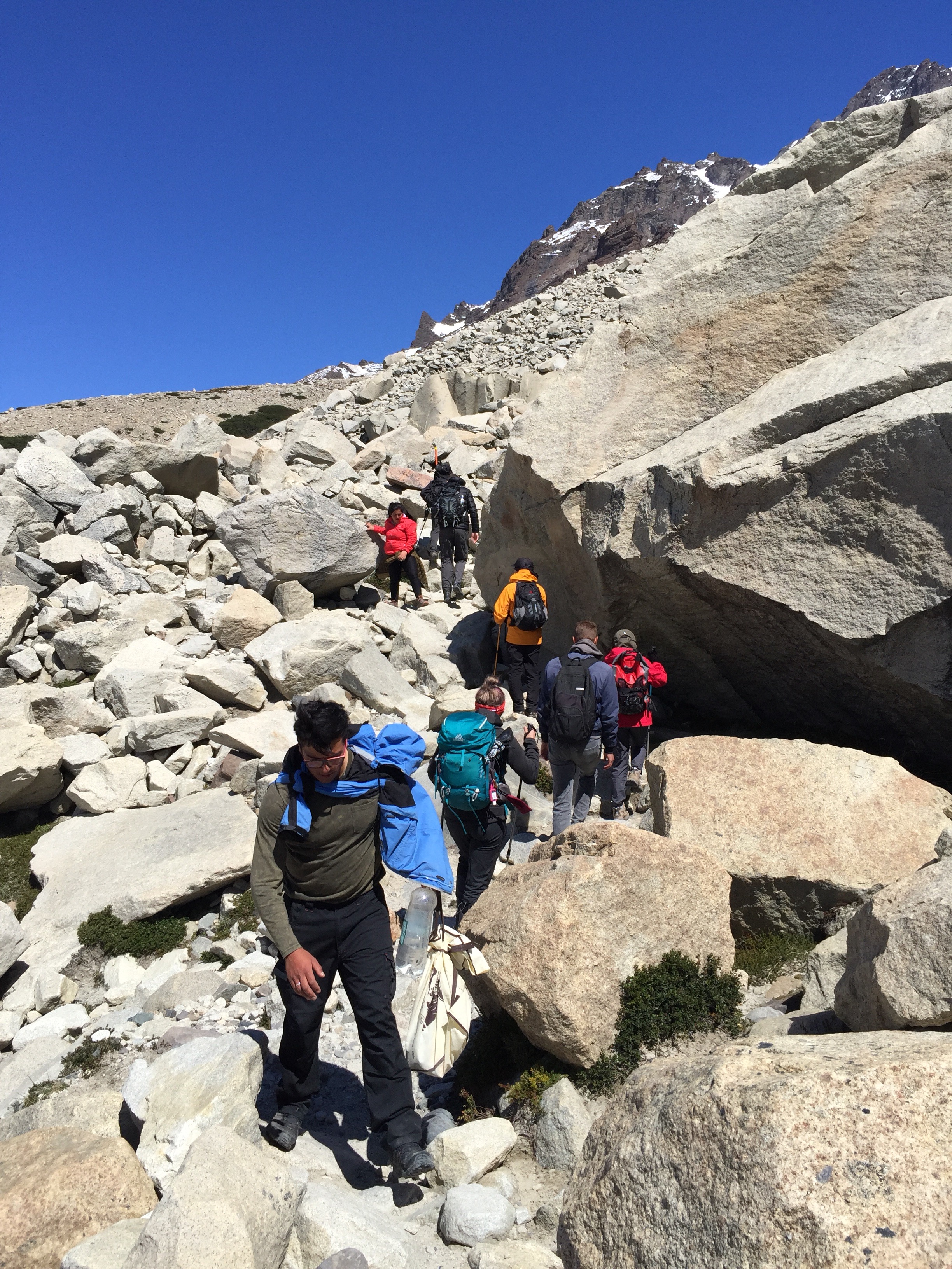 As we neared the bottom of the valley, Dan pointed out an incredible sedimentary hill that had been infused with igneous rock at most interesting angles! It’s hard to get a concept of height anywhere along here…suffice it to say that our efforts that day were the equivalent to climbing up and down 420 flights of stairs…and that only got us to the base of the Torres Del Paine!