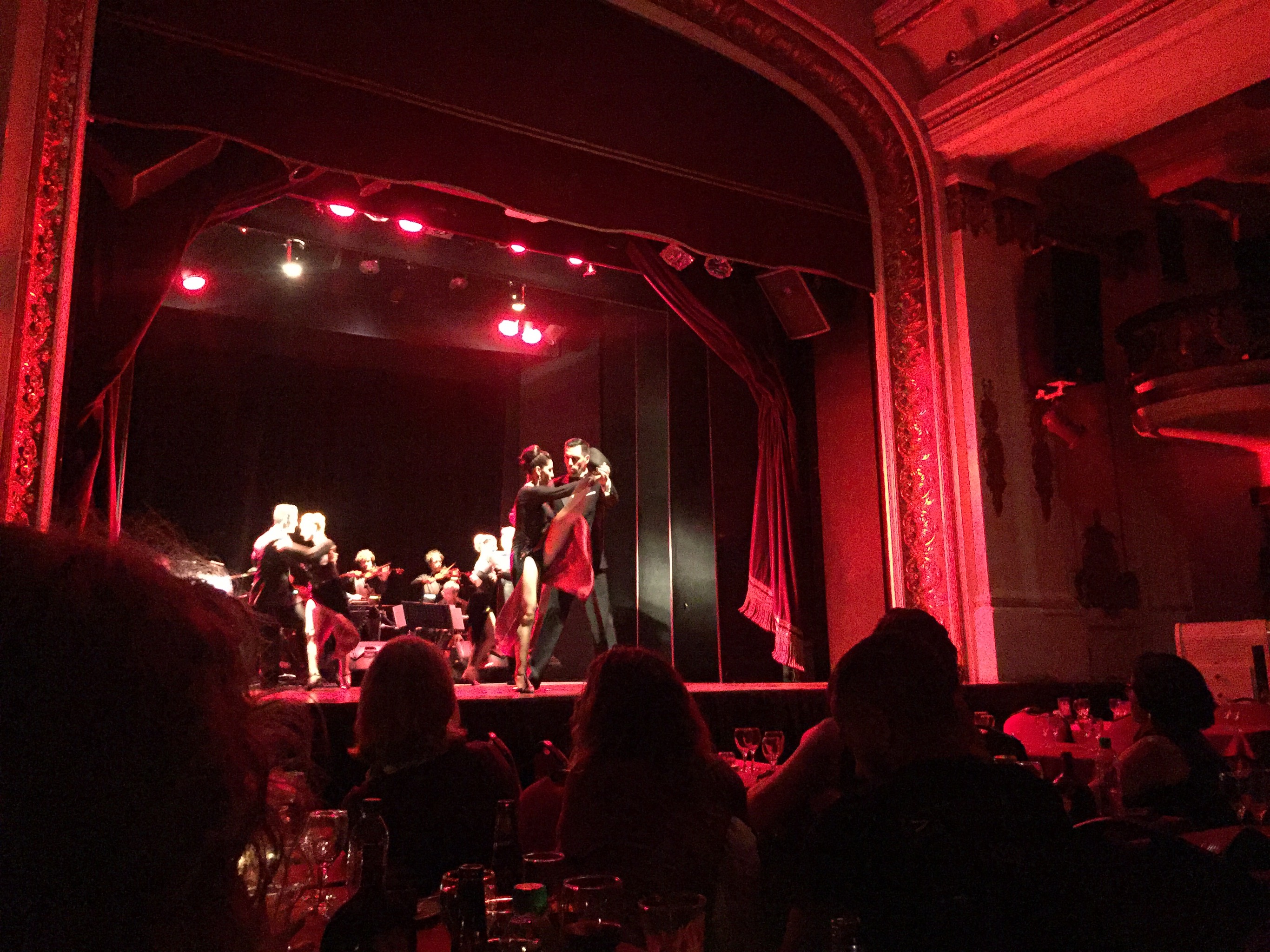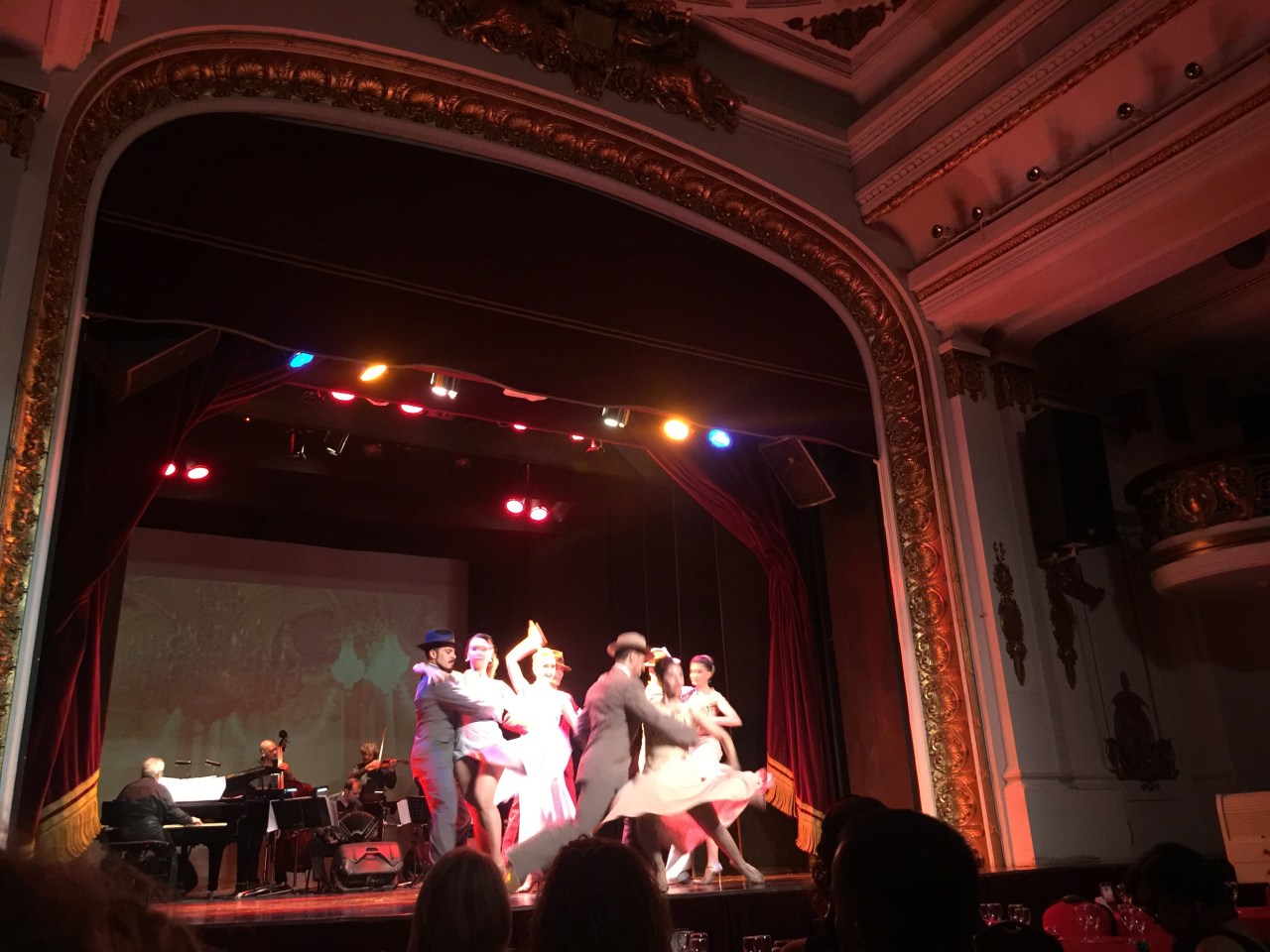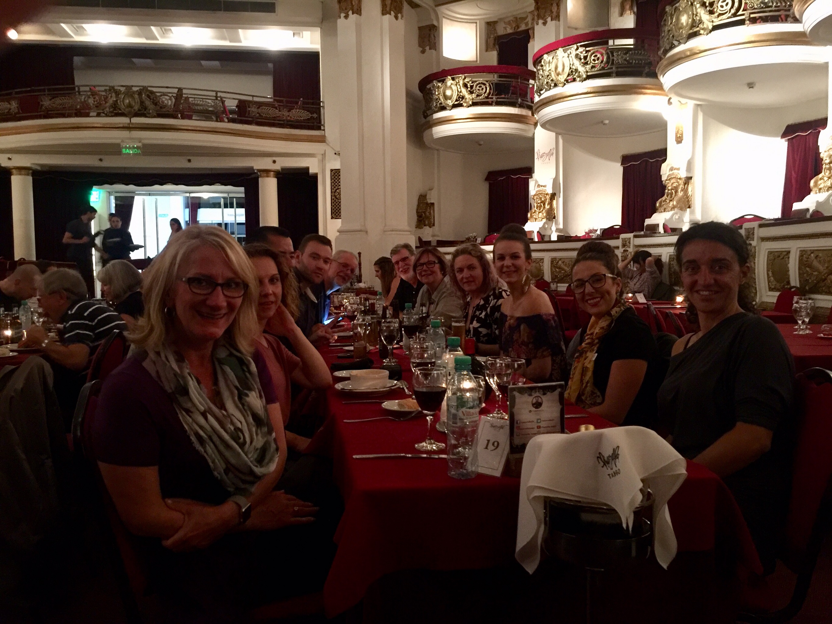 After the lesson we were off to the dinner theatre. They had us all at a long table close to the stage is a former theatre. Gorgeous details to the room even though it was below ground! (You would never guess once inside!)