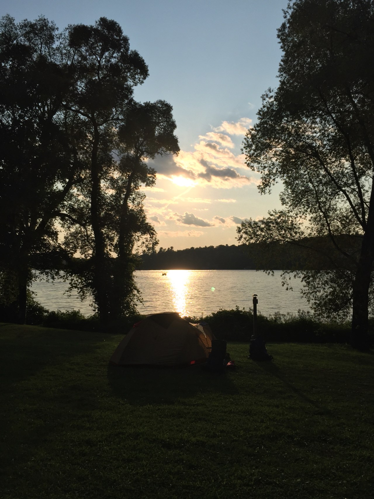 Dan and I stopped at the Rideau Summerland campground and searched for the owner, who wasn’t going to be returning until 5:30. By 6, with no owner in sight, we decided to take matters into our own hands and set up on a spot.
