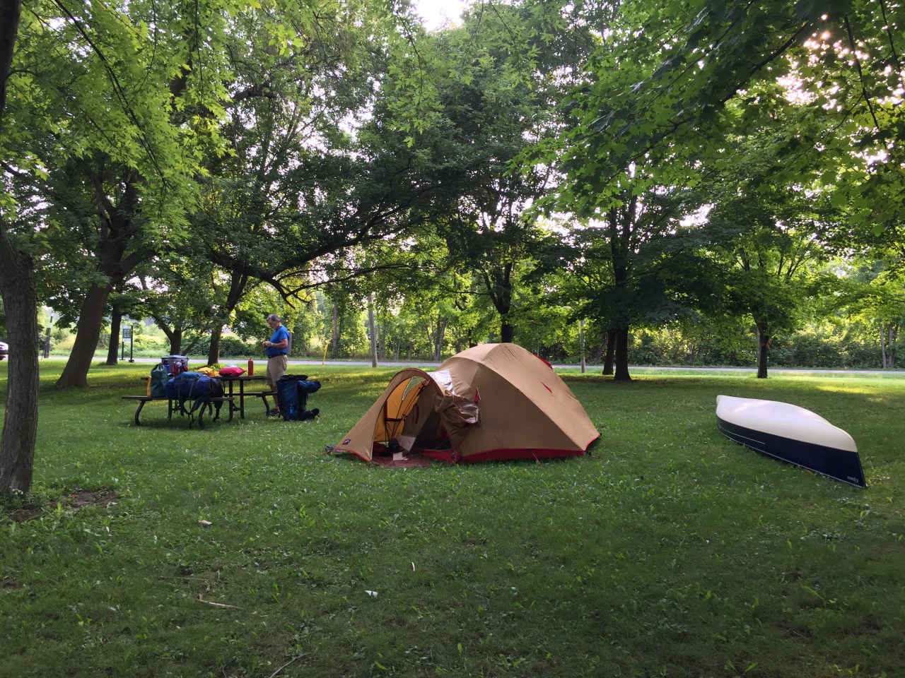Oh well, rescued by a couple of Parks Canada guys we managed to get our canoe and Dan and I out of the water, and no gear was missing! Thank goodness for water packs… even my Fitbit survived! AND thank goodness that we had stored our bigger nonessential stuff at the lock station!!!