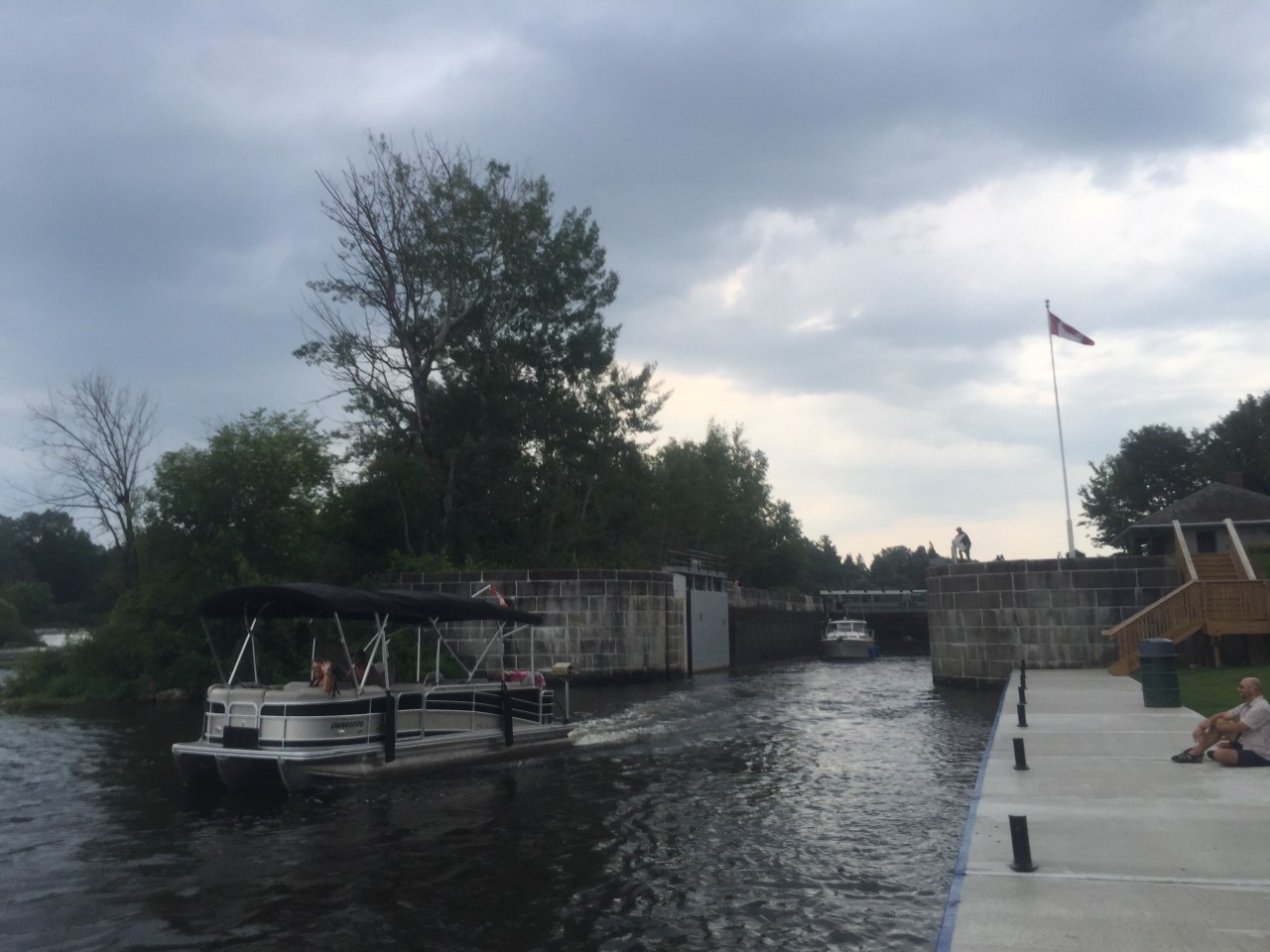 Earlier on this stretch our friends from the night before passed us in their pontoon boat. They arrived at the lock station about 30 min ahead of us and were in the middle of a torrential downpour that completely missed us! Sometimes it pays to be slow!!