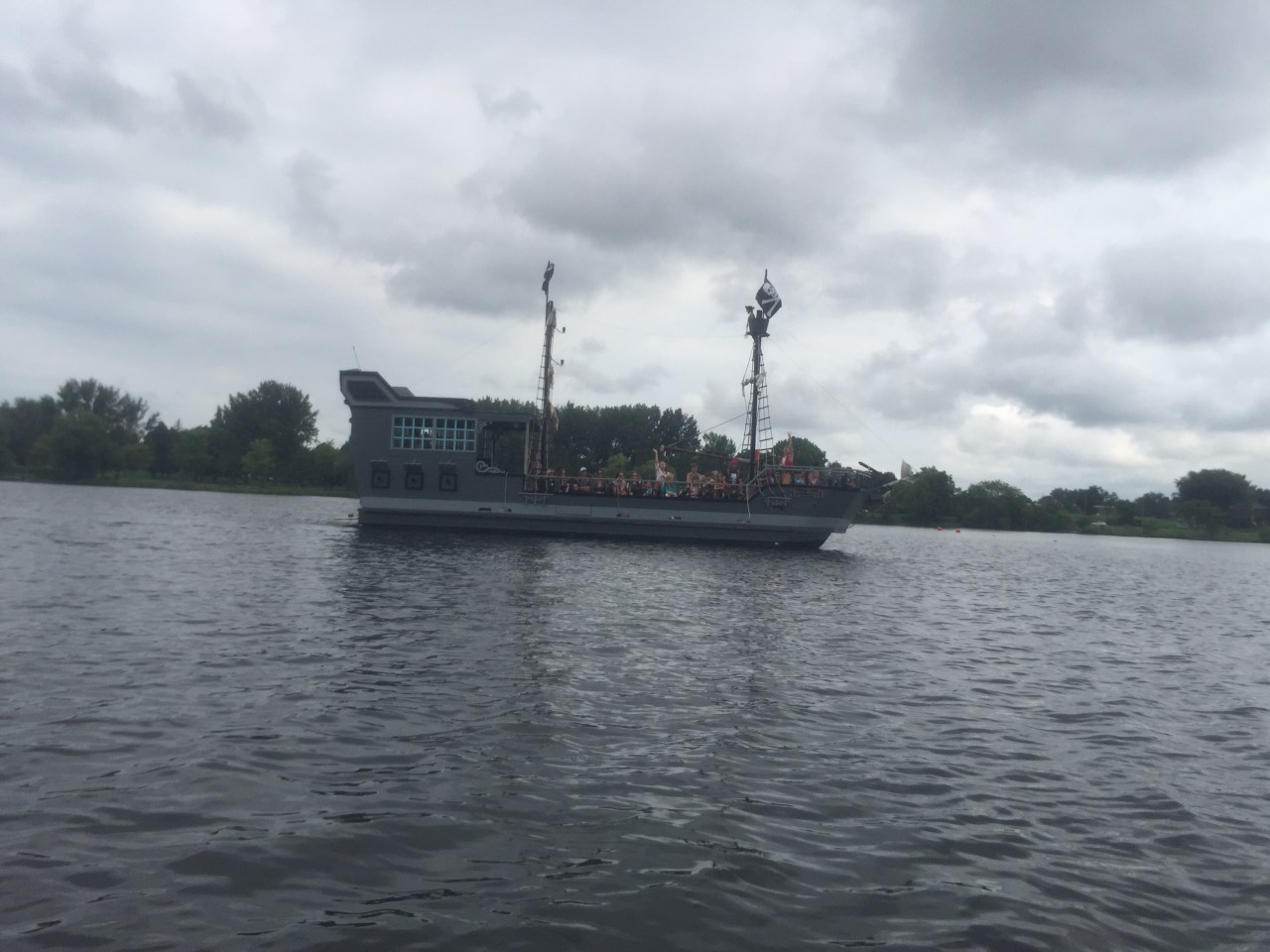We soon found ourselves on Mooney’s Bay. The last time I visited this park it was to see my grandniece Nora paddle in the Nationals. While the paddling course was permanently in place the only major site we saw was this pirate ship taking tours on the bay!