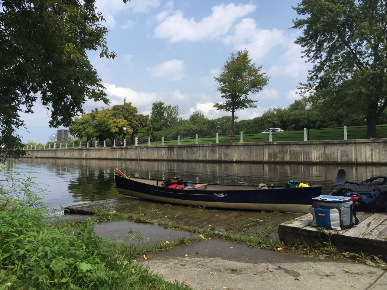 At the end of Mooney’s Bay we reached the Hogs Back locks. What an interesting portage it was. I think it’s the first time that Dan has had to carry a canoe through a concrete walkway! I guess they don’t want you crossing the main drag here!!!