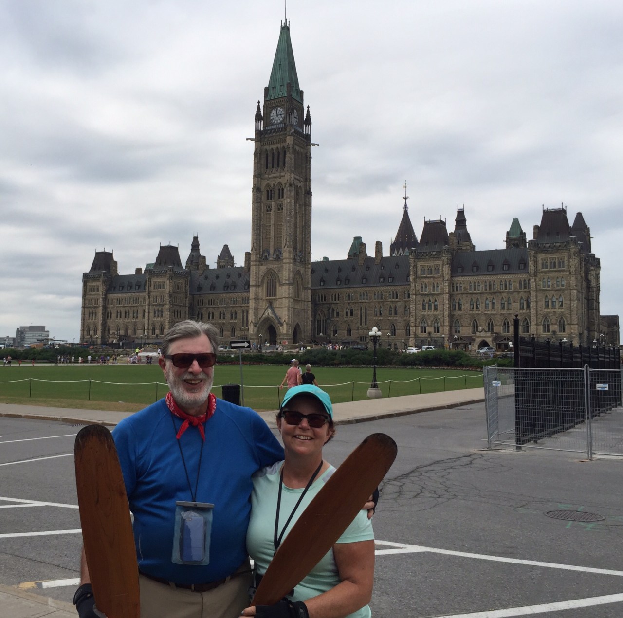 After that shot, we headed up to Parliament Hill to visit Justin. They would not let us through security with our paddles, so we settled for this shot from a friendly passer by! Some people asked about the paddles so we told them we had just paddled up from Kingston! They were duly impressed!
