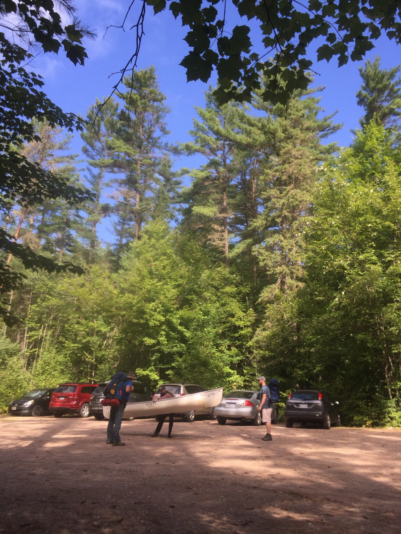 The parking lot was about 150 metres to the actual lake where we “put in”. This meant all the gear and canoes had to be portaged to the lake.