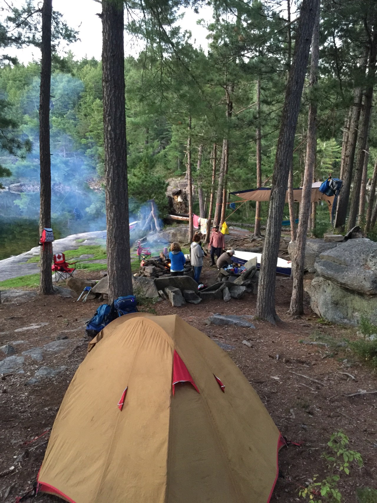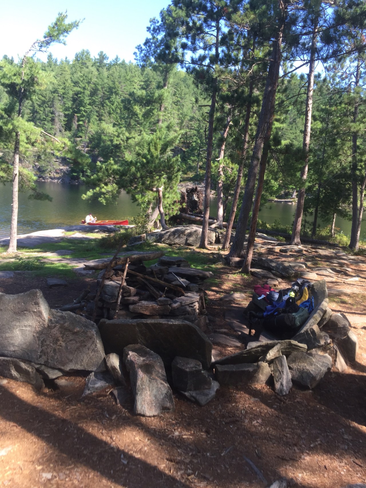 Glenn, Gwen and I were in the forward canoe, and with 3 of us in one canoe we could distribute all the gear in order to single portage (this means carrying everything in one trip along the hiking path instead of having to come back for additional gear that you couldn’t manage not he first pass). With a long weekend coming, we were hoping we were on the lake early enough to get the site we wanted. At the other end of the portage, we headed straight off to try to get on our site of choice…our efforts were rewarded!