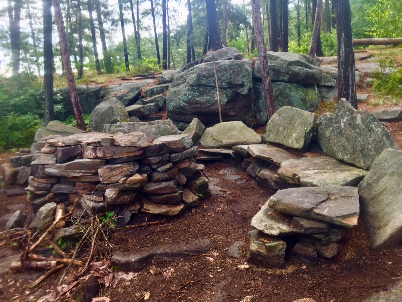 Once at the end of our paddle along Brigham Lake we landed at the portage and took on the 750M hike that took us into Opalescent Lake. We were hoping to get a particular campsite on that lake – one which would give lots of room for our 4 tents and had a spectacular fireside setup. This site is often referred to as the “Flintstone site”, and is even featured on tripadvisor!