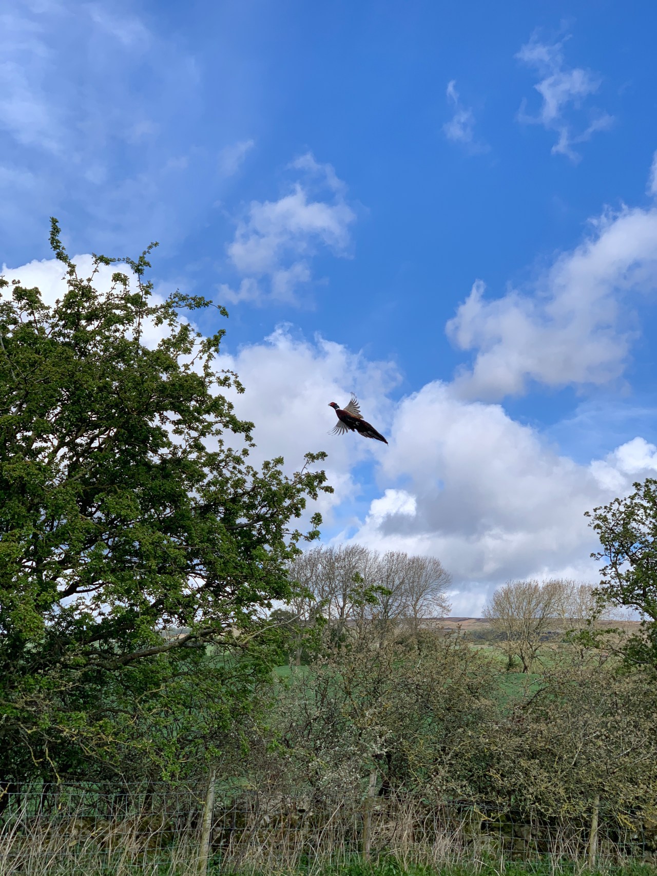 In one field we came across a male pheasant who was rather perturbed that we were disturbing him. When he couldn’t penetrate the hedgerow to get away ( we were never closer than 10 metres) he flew off in a tizzy!