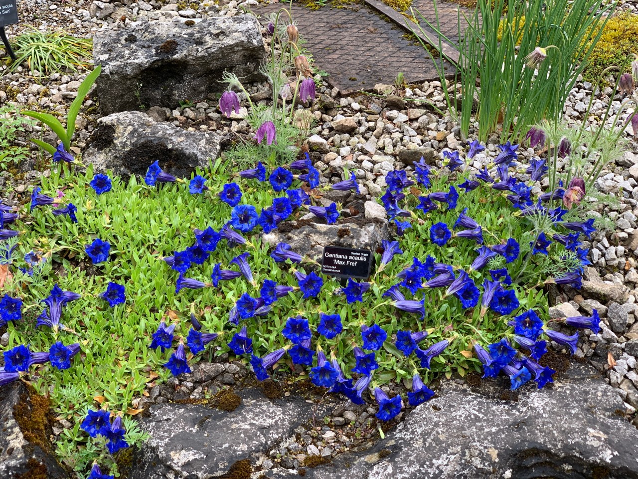 For a dreary wet day, this garden certainly perked up our spirits…from the intensely blue ground cover ( which I actually thought was plastic covering from a distance)