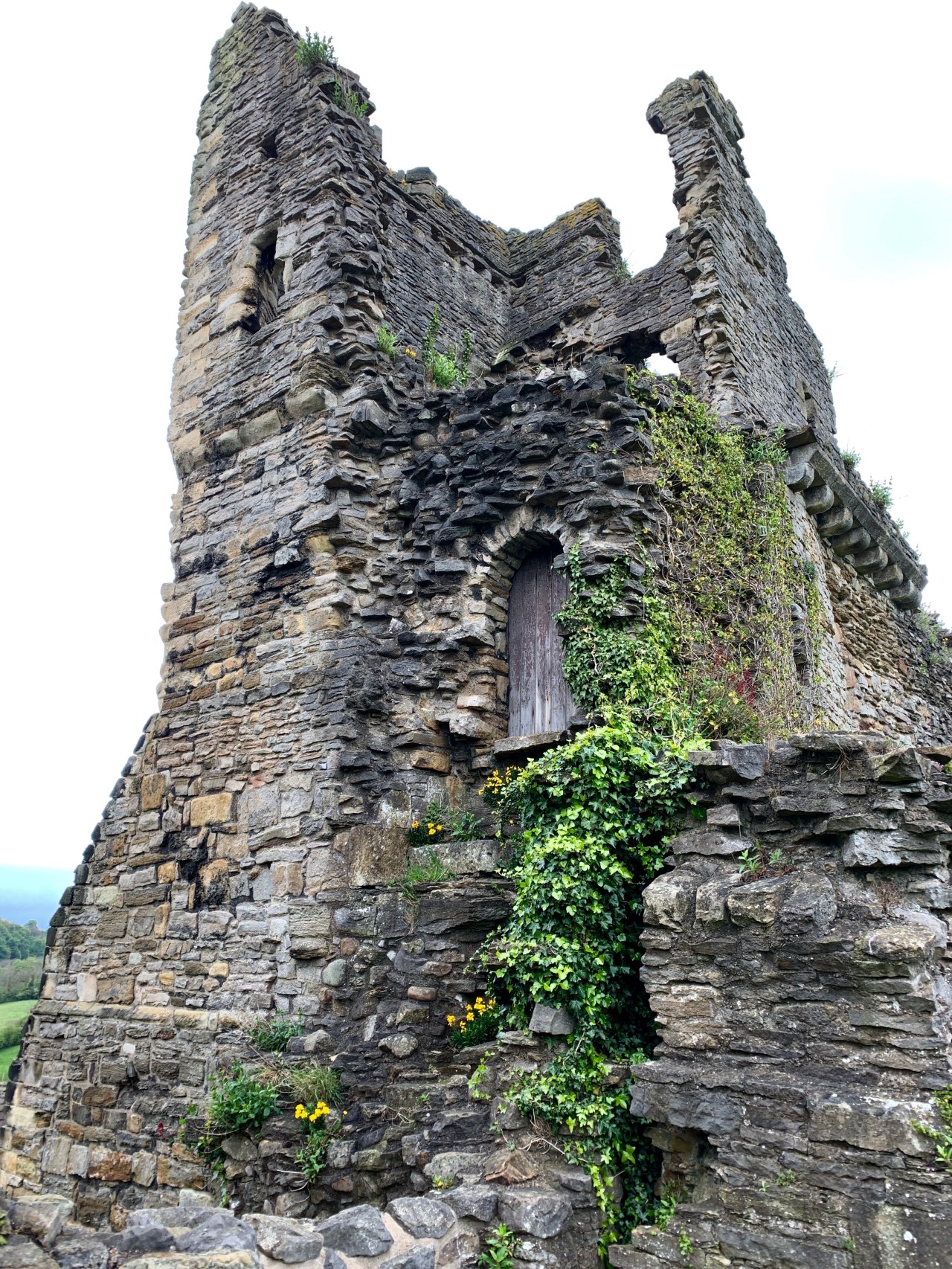 The huge column you can see in the doorway supports the second storey floor of the great hall. Although the sandstone stairs are worn and quite narrow at times, I climbed to the top to take in one of the best views of the Dales!