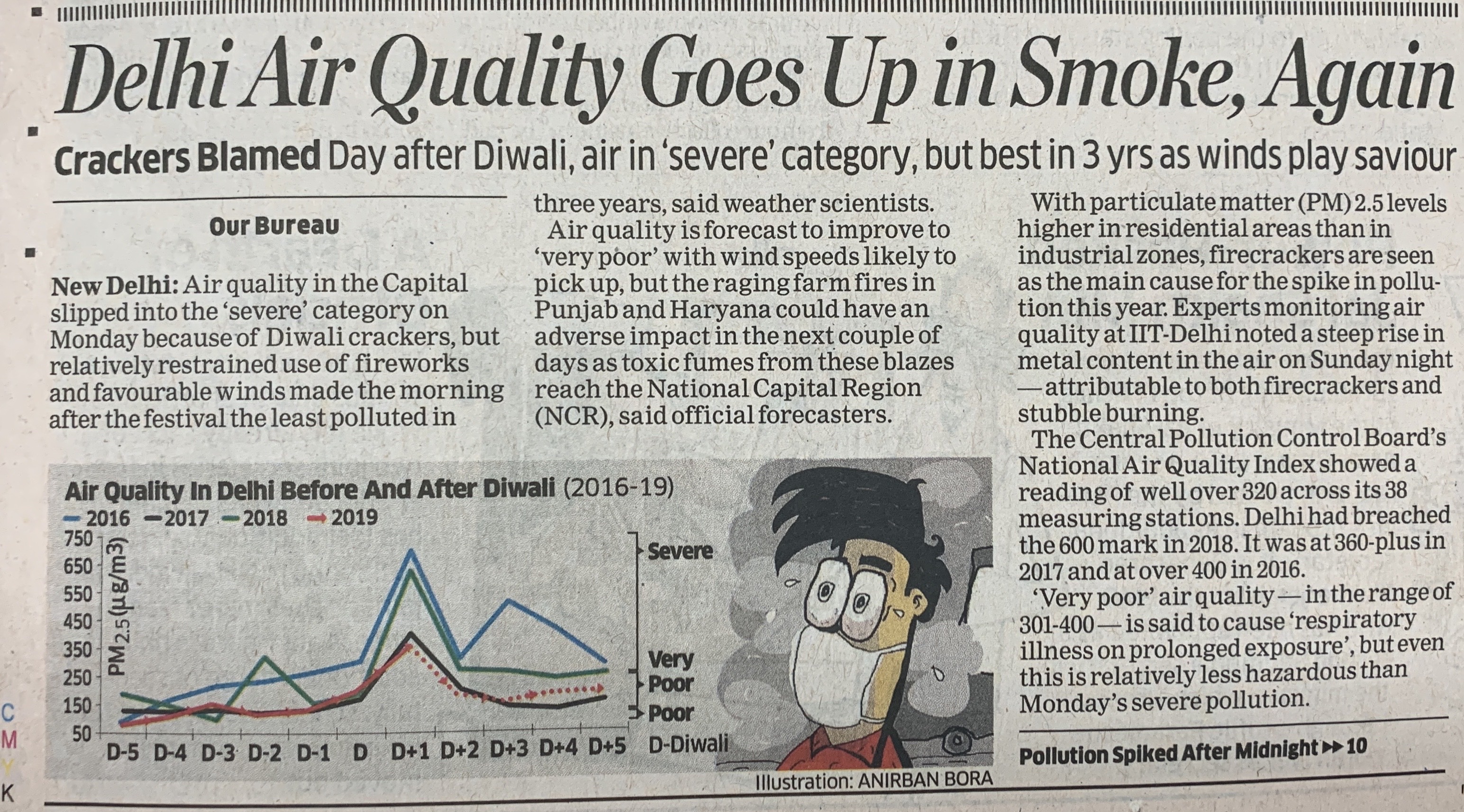 The air quality left a lot to be desired, and we learned that while it was extremely poor after the festivities of Diwali, it was actually better than 3 years ago, as the news article attests! No wonder my nose were lined with black and lungs were congested!
