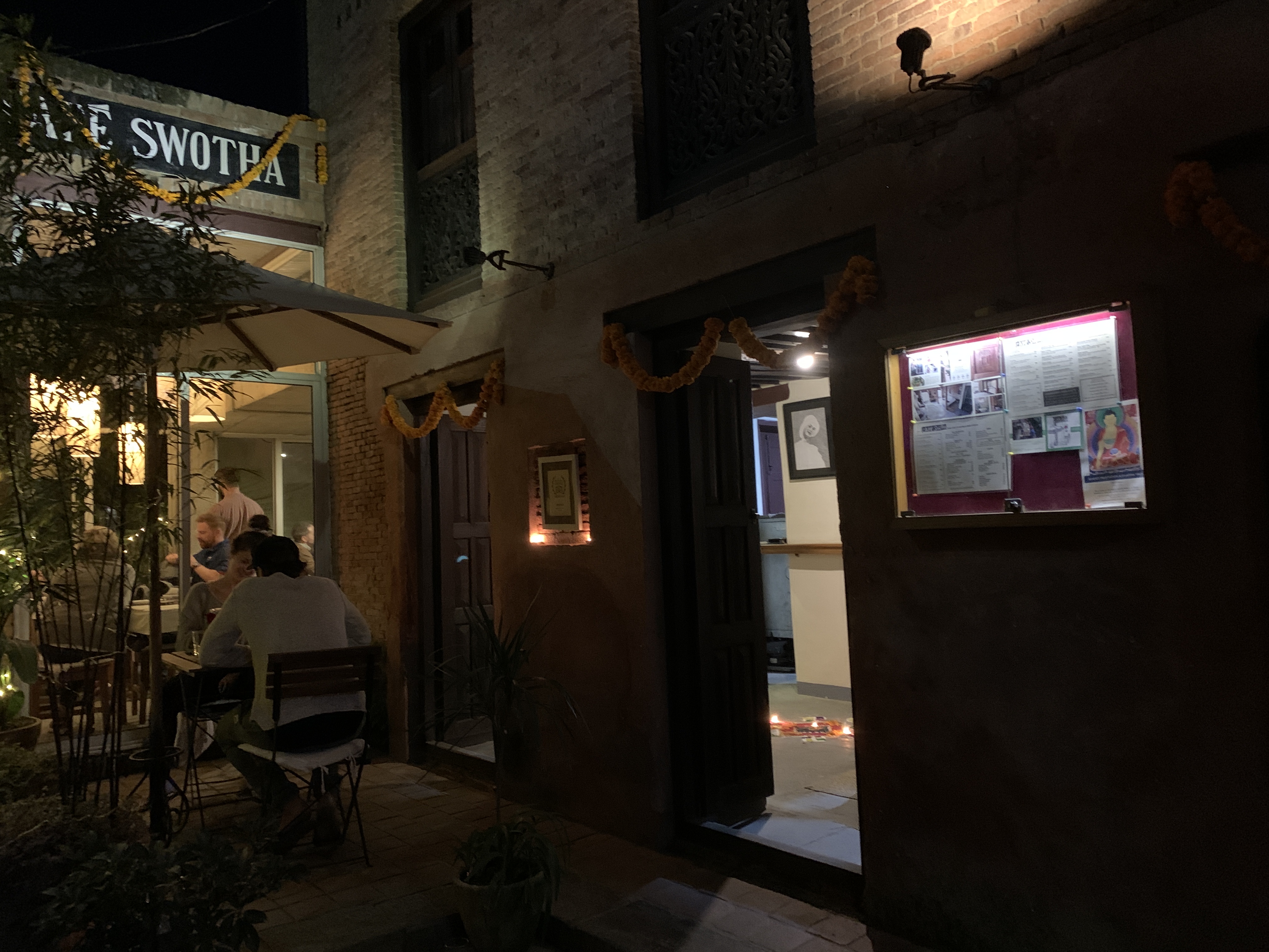Once refreshed, we headed out to get some grub, as well as a drink after our day’s journey. We stopped at the cafe just outside the door of our Inn, and it was extraordinary! Who would have thought I’d be eating Norwegian Salmon in Nepal!