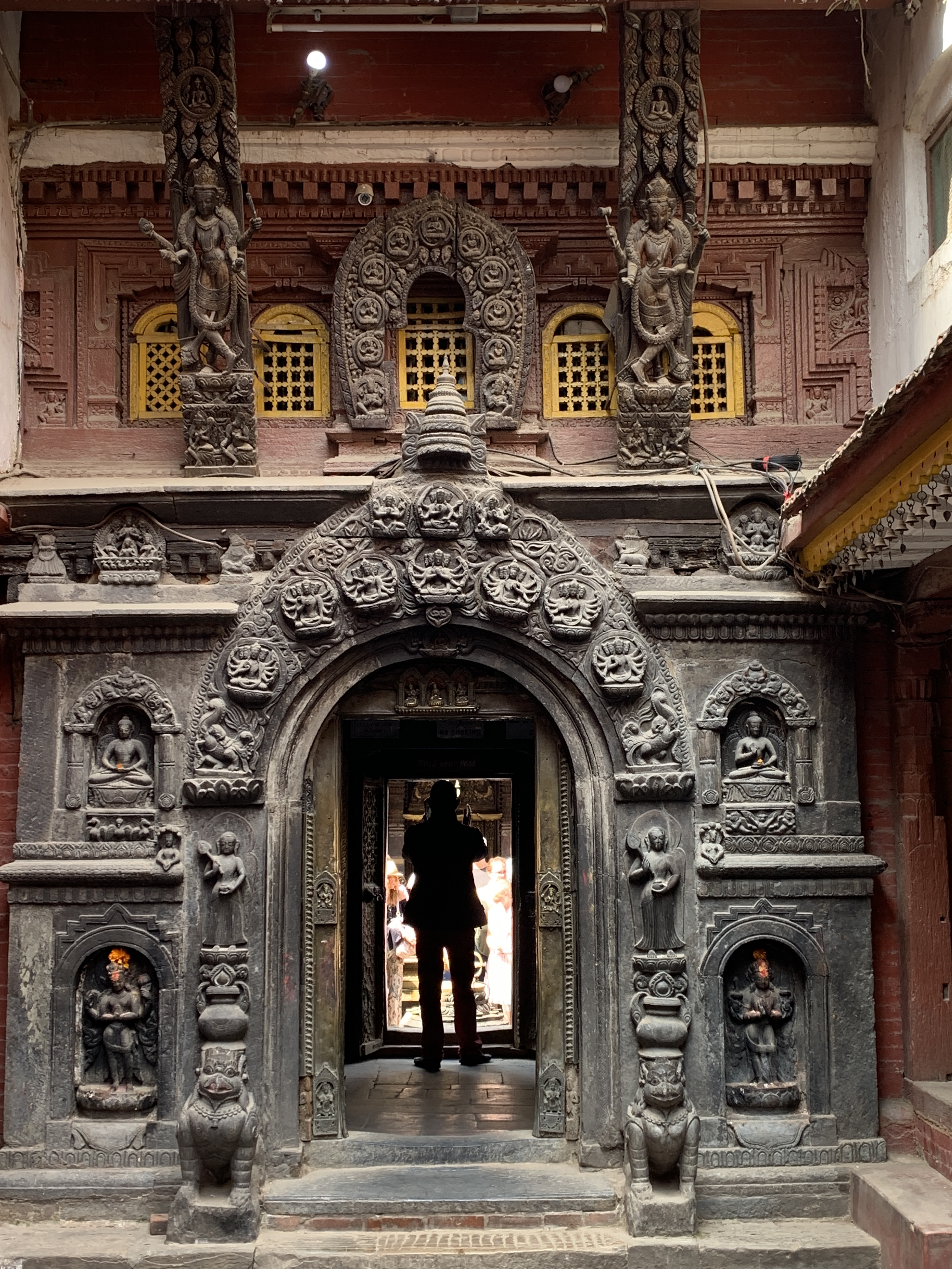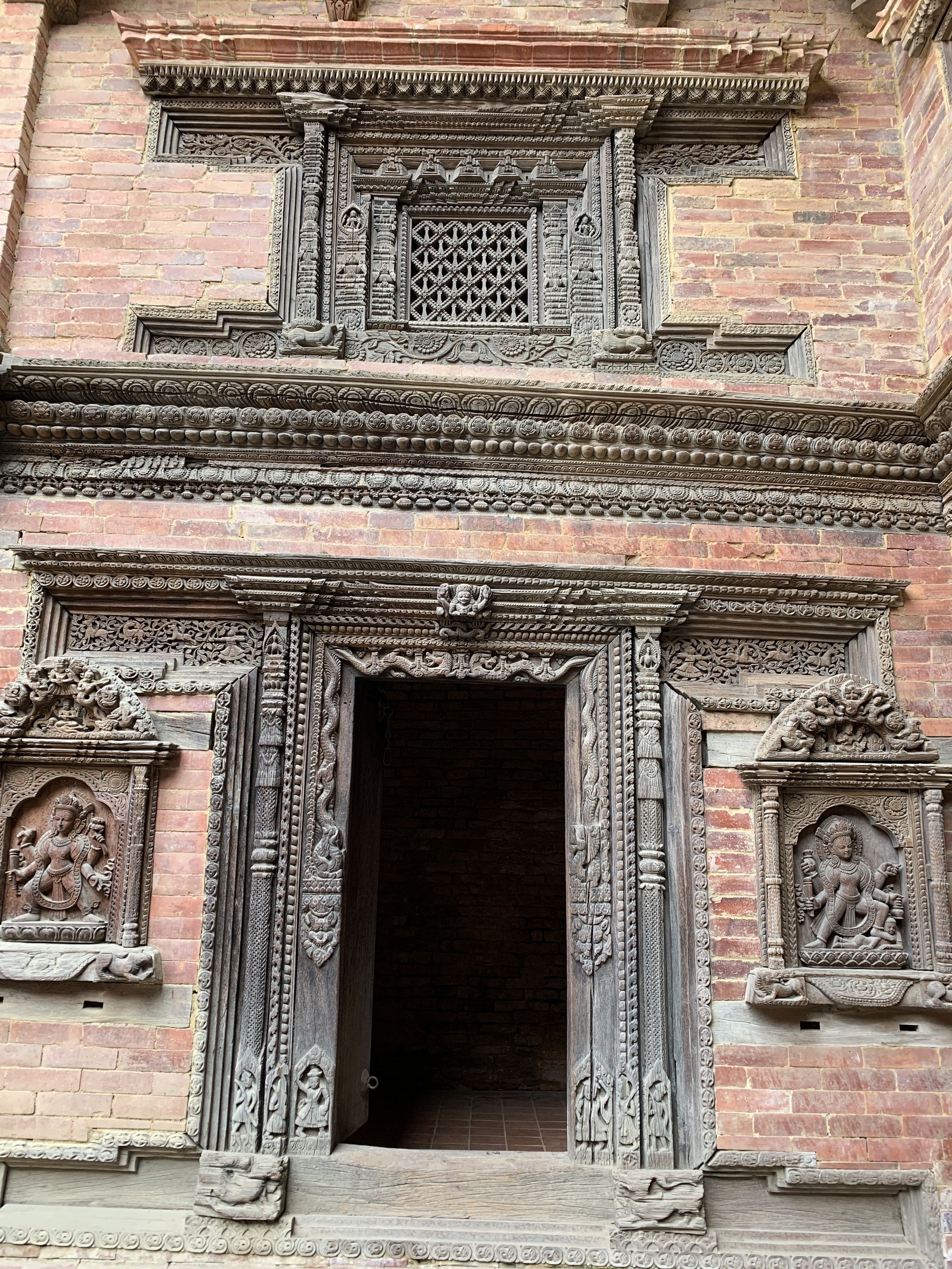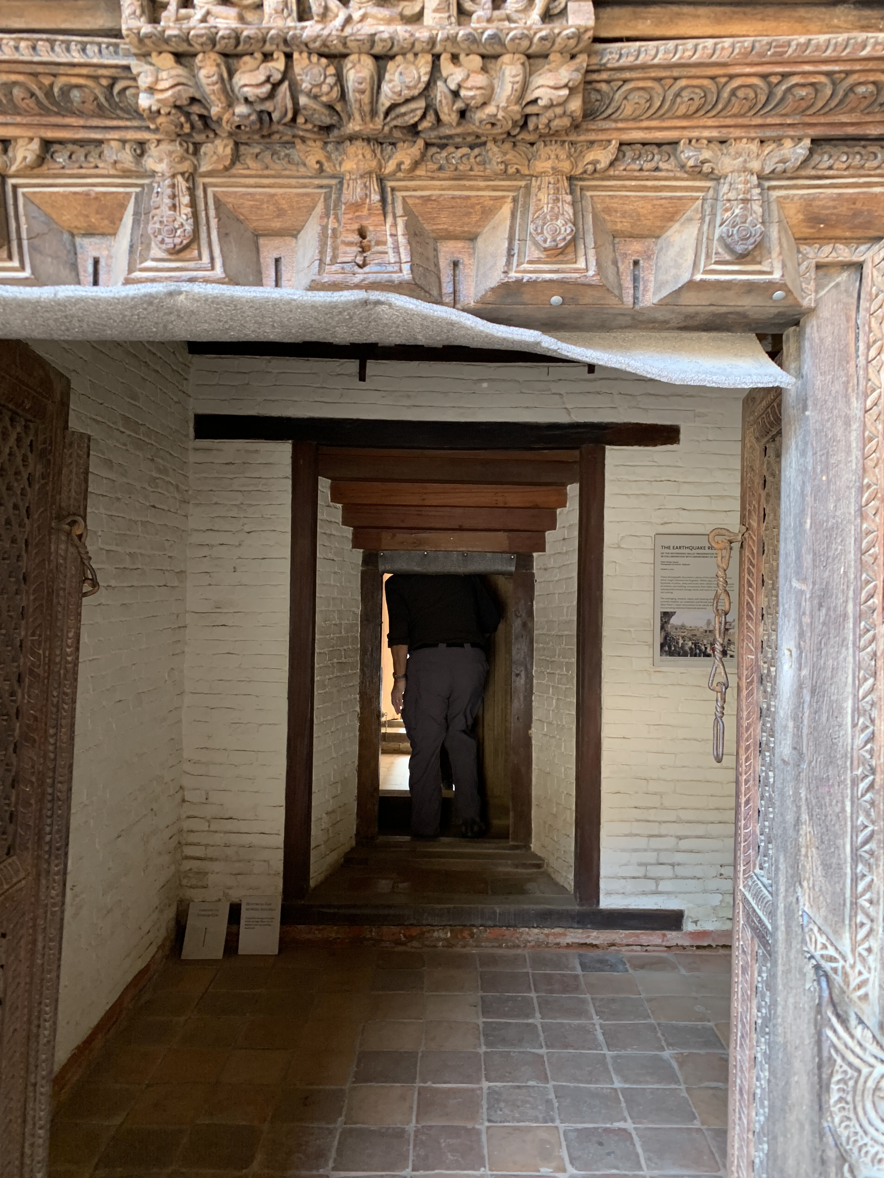 Our guide told us the reason for the very low doors in Nepal was to protect the women of the families. You see, the king’s had a right to go in a take any woman they wanted, but the king would not bow to anyone. As a result, if you made an entrance that required him to bow his head, he would not go in there. All I can say is that there must have been a lot of women to protect in the palace as well, because all of those doors seemed very short too!