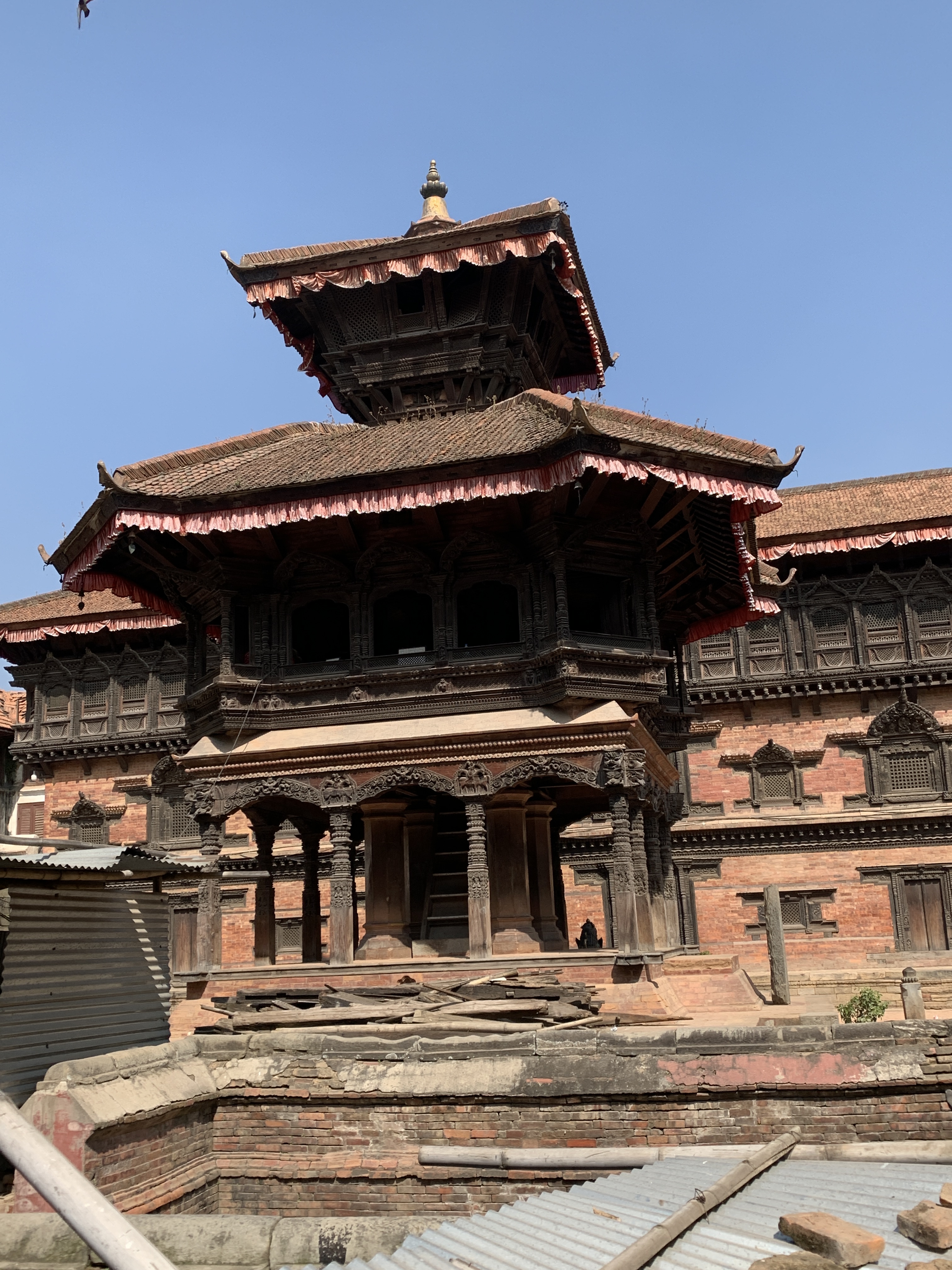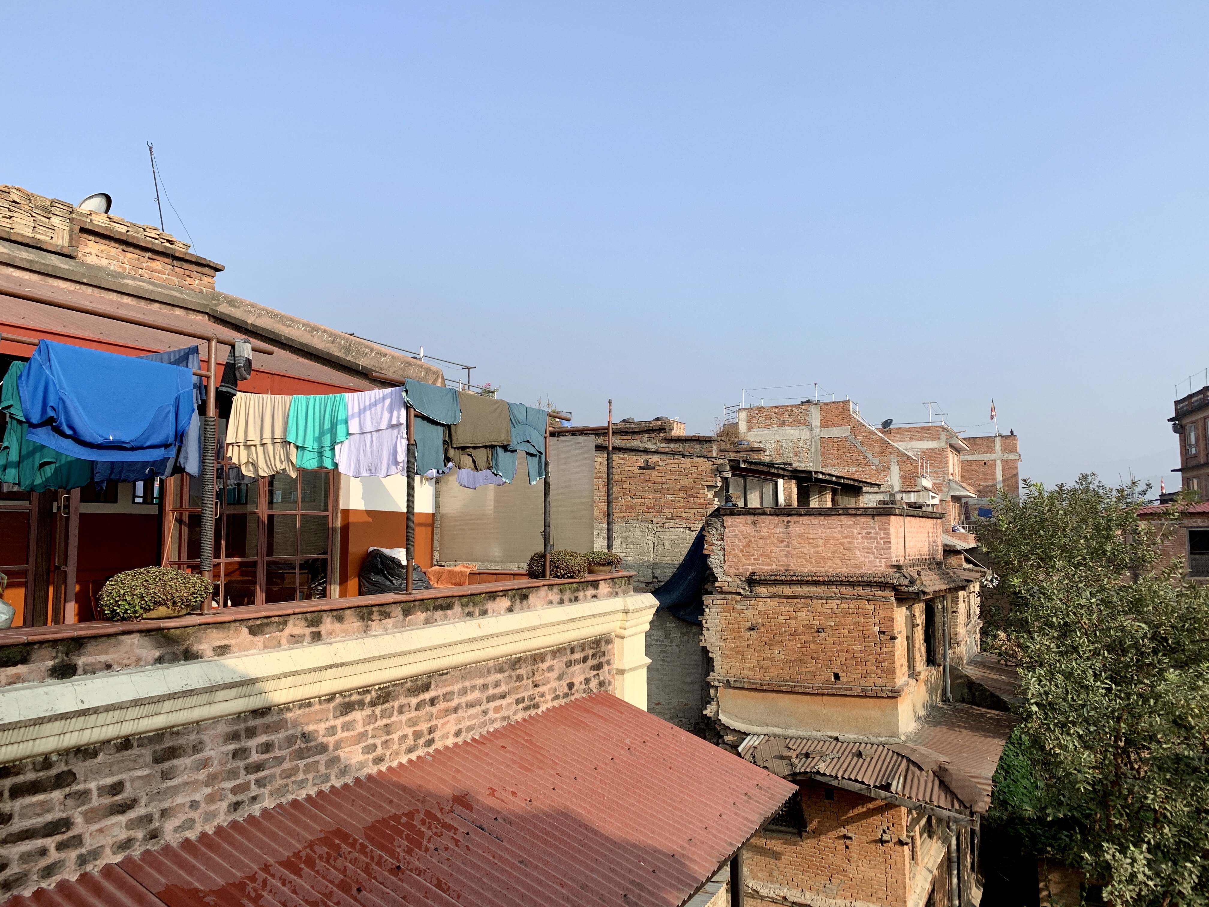 We started our day with breakfast on the roof top. A quick view here shows that a) our laundry has been done and is finishing drying, and b) the earthquake devastation that parts of this neighbourhood is still recovering from. Our guide from yesterday said that there was little insurance for people to rebuild. It sounded like they received about 10% of the cost to rebuild. Thus the restoration has been slow indeed!