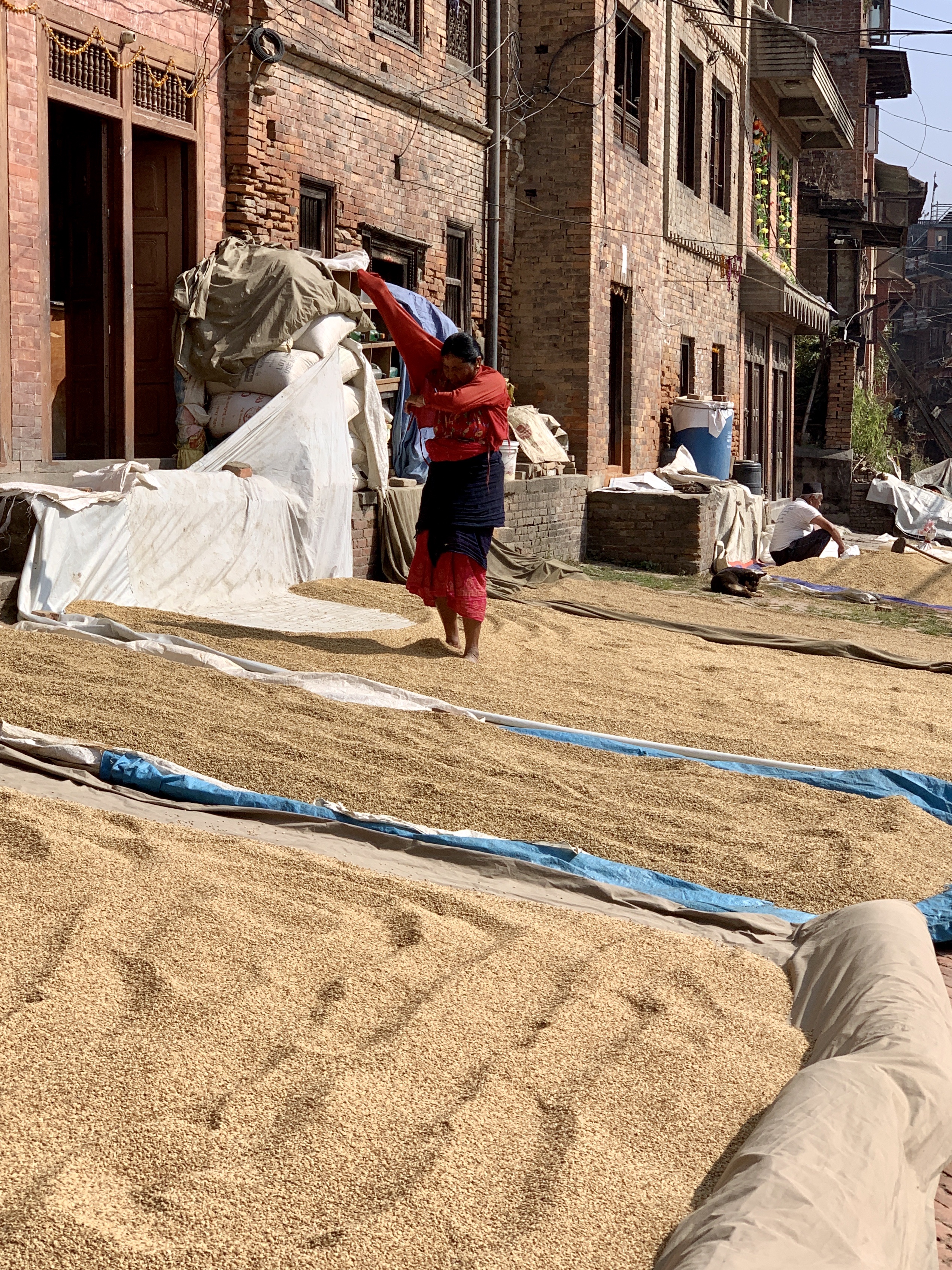 On our way, we saw the rice returning to the mats for drying. And interestingly, we also saw how the beautiful patterns were made in the drying rice. I guess it’s similar to stamping grapes!