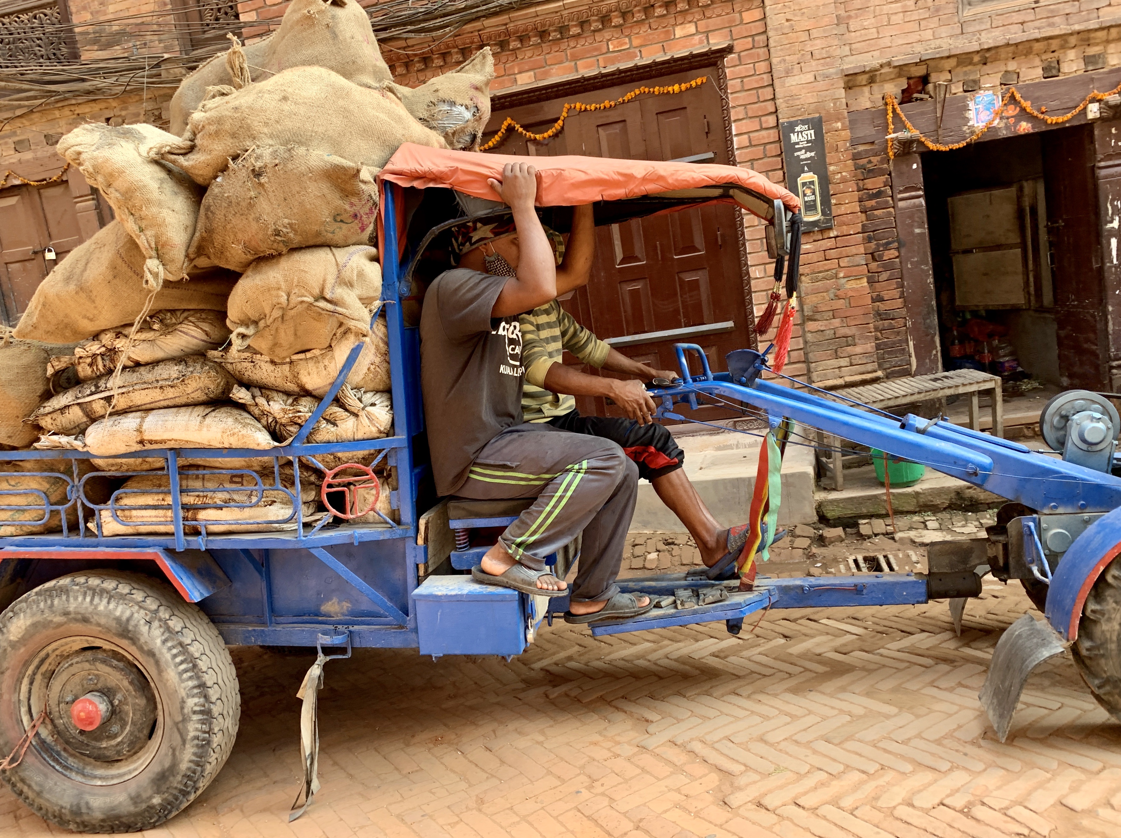 One of the interesting vehicles that we have seen is a cross between a truck and a tractor. These work horse can manoeuvre the narrow streets carrying quite the load. This one appears to be carrying debris from earthquake restoration.