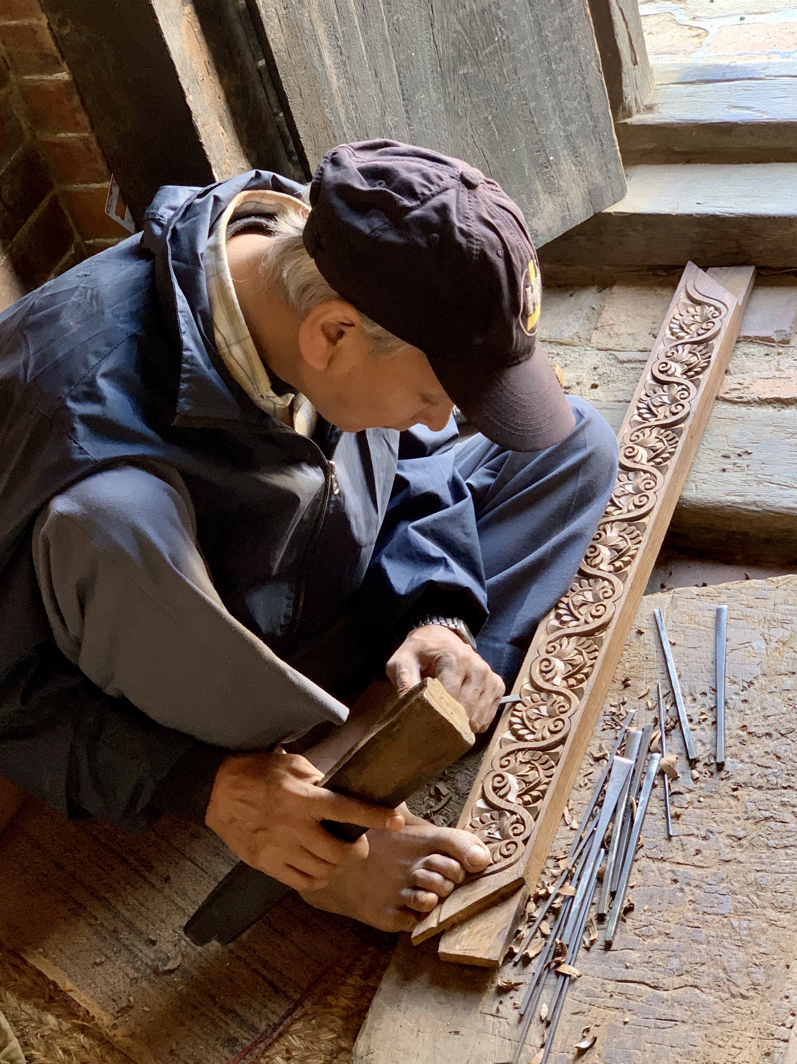 As we toured the square, we saw some woodcarvers working at making restored window screens for damaged buildings on the square.