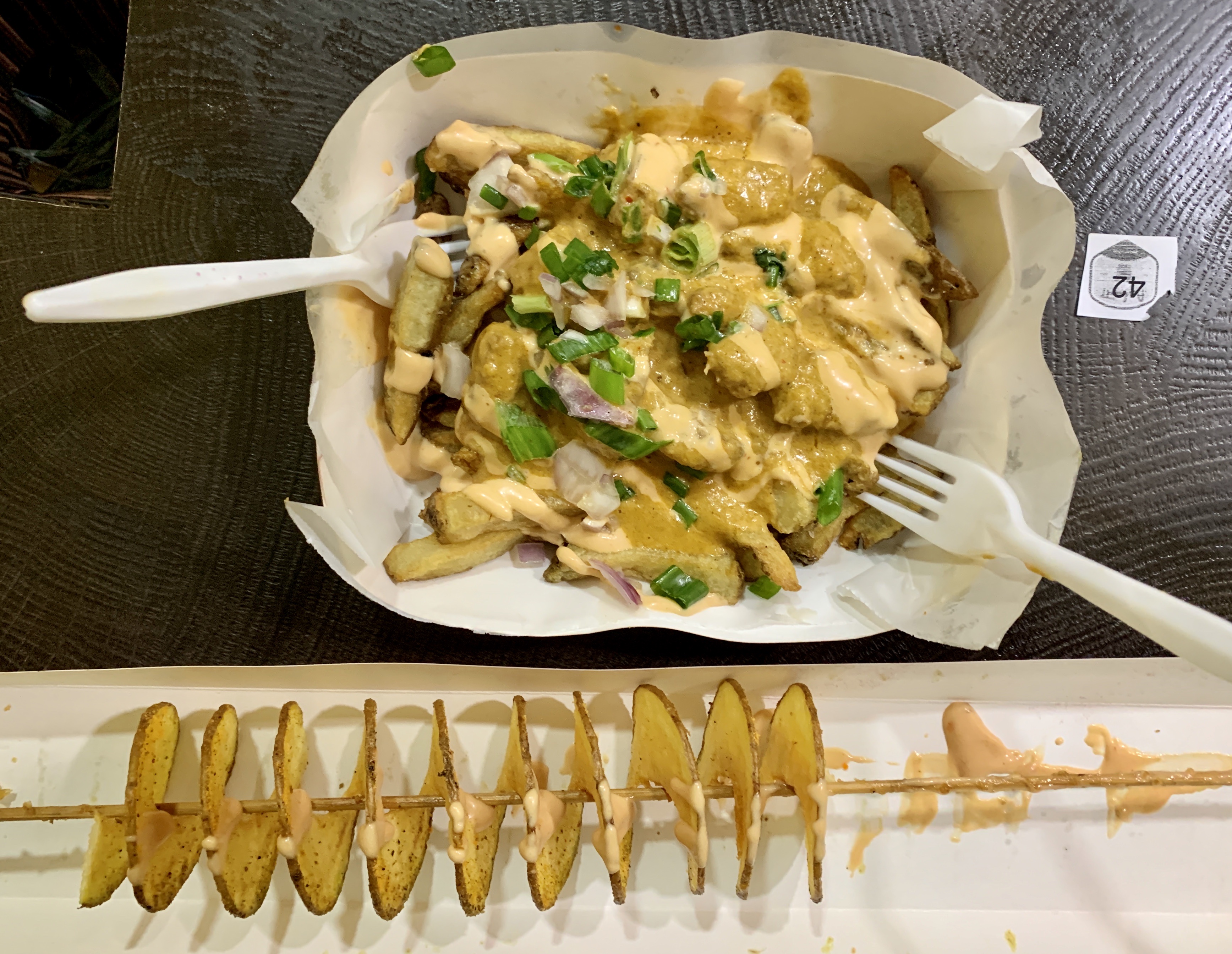 After packing and some R and R, we headed out for some supper. Feeling a little adventurous, we headed back to Aalutti to try their butter chicken poutine…and a Tornada, which is a potato spiral cut and threaded onto a skewer to then be deep fry and sprinkled with a “magic” sauce! All wonderful!